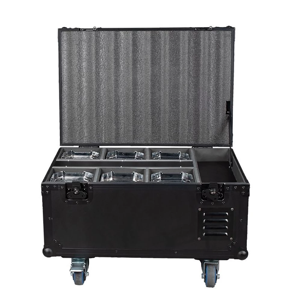 The ADJ Lighting Mirage Q6 PAK is all-in-one event up lighting system with six (6) IP65 rated, battery powered fixtures and a durable flight case with an on-board battery charging solution.