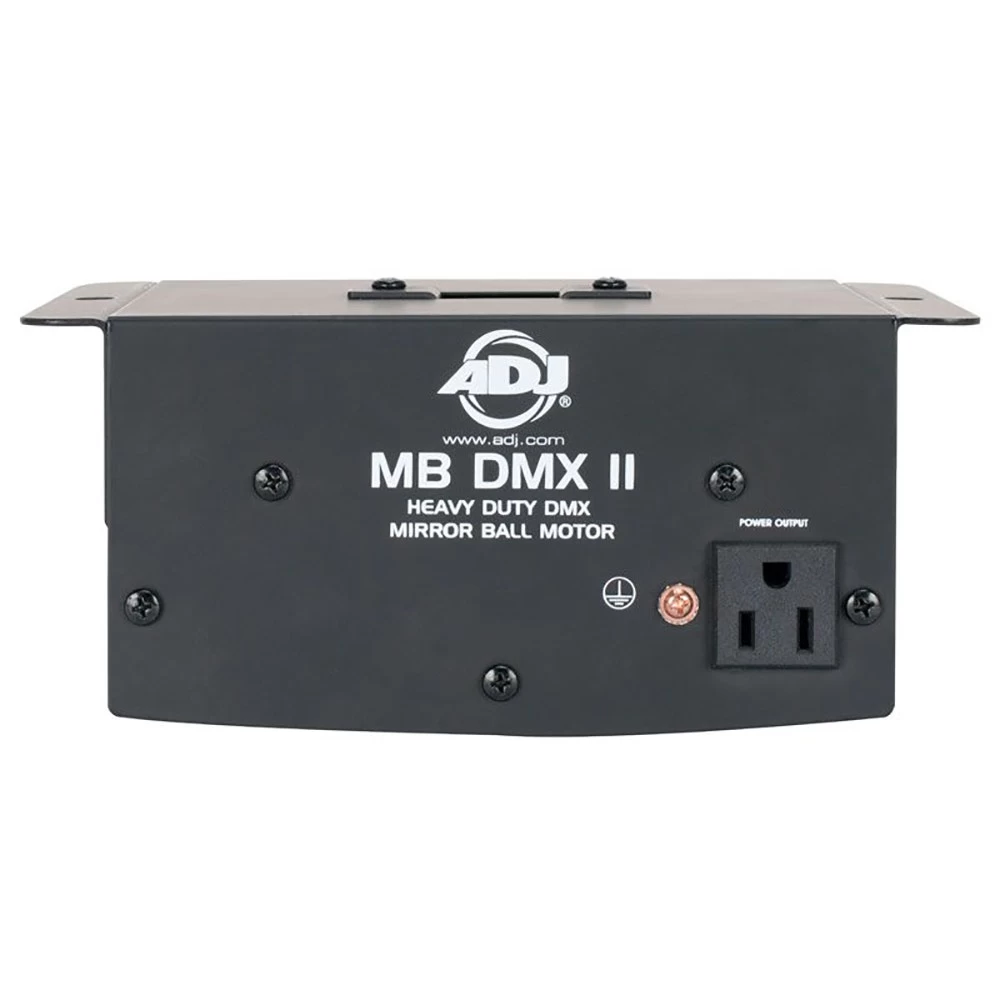 The MB DMX II comes with 2 DMX channels: 1 channel to adjust the motor speed/direction of the mirror ball and 1 channel to turn the pinspots on and off. So when you are setting up that next dance and need the a fantastic display of light, hook up multiple mirror balls using the ADJ MB DMX II heavy-duty mirror ball motor. 1/4″ socket is offered for On/Off control with optional UC IR controller (sold separately).