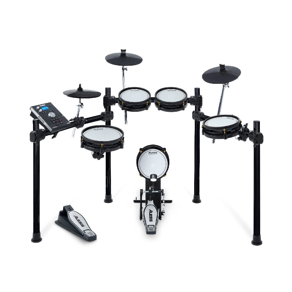 The Command Mesh Special Edition includes everything you need to start playing drums right away – a cable snake, drum sticks, and drum key are all included. There’s also a high-quality single-beater Alesis kick pedal, and an expressive hi-hat control pedal. The drum pads, cymbals, and module all mount to a four-post rack that stands firm no matter how hard you play. You can even fold the rack up for easy storage – perfect for bedrooms, dorms, studios, or any other area where space is limited.