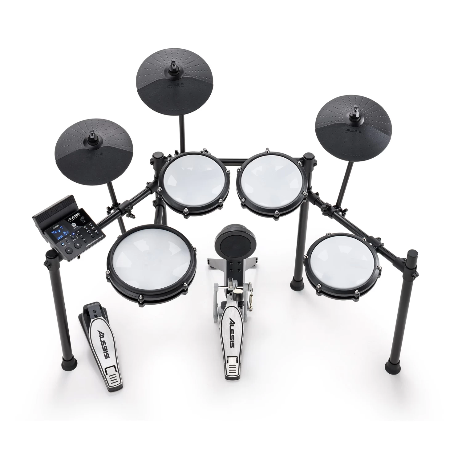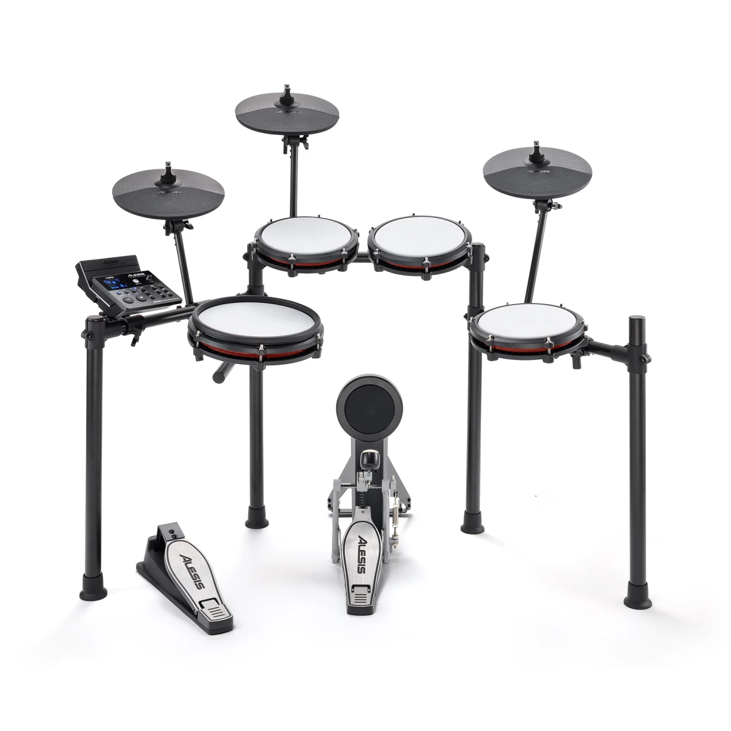 The Nitro Max Kit includes everything you need to start playing drums right away – all in a lightweight, compact, stylish design. A hard-wearing cable snake, drumsticks, and drum key are all included. There’s also a high- quality single-beater Alesis kick pedal, and an expressive hi-hat control pedal. The drum pads, cymbals, and module all mount to a four-post rack that stands firm no matter how hard you play. Already a compact, space- saving design, you can even fold Nitro Max even smaller for easy storage – perfect for bedrooms, living rooms, playrooms, or any other area where space is limited.