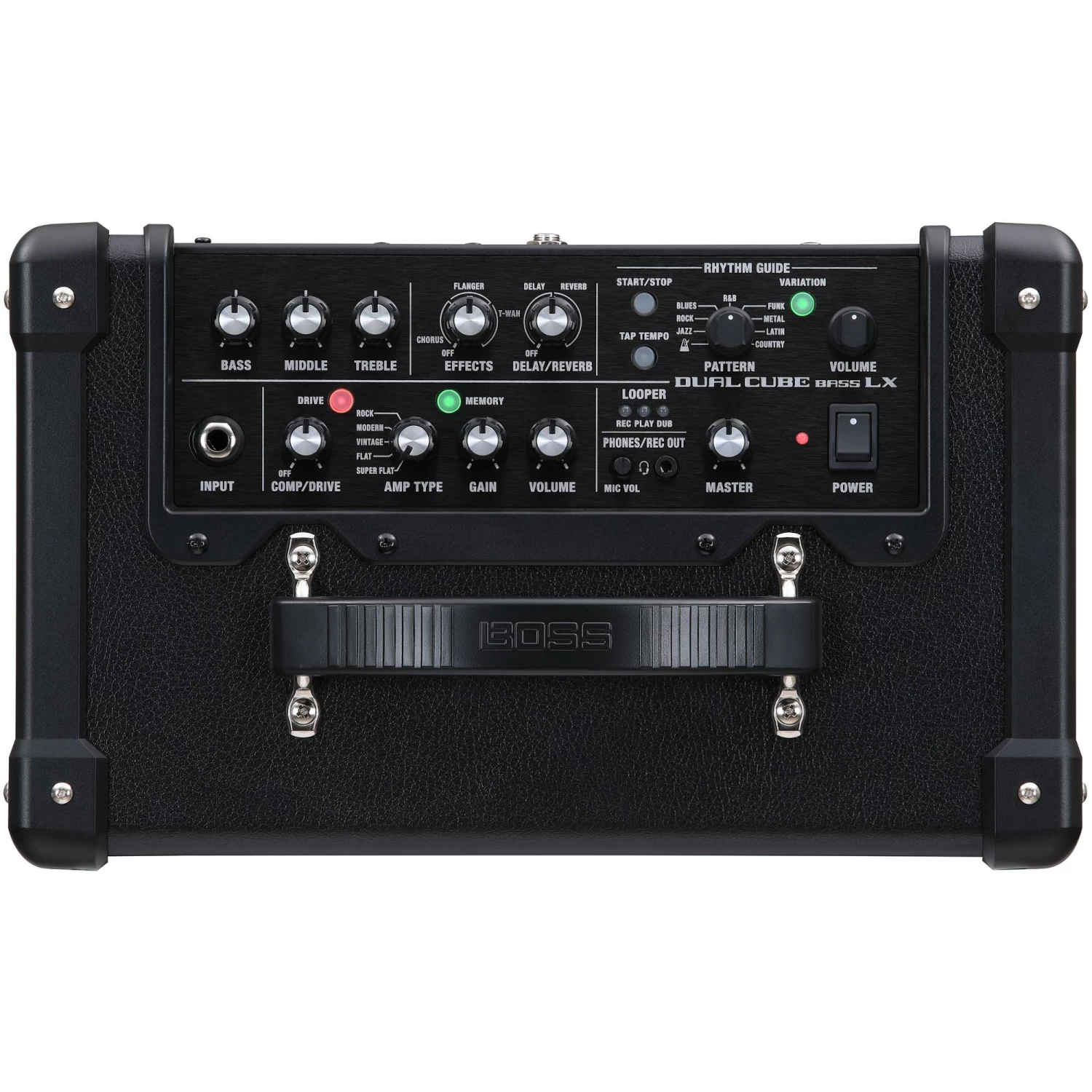 For over four decades, CUBE amplifiers have brought exceptional value to musicians everywhere, offering great sound and versatile features in portable, go-everywhere designs. The DUAL CUBE BASS LX is the most advanced compact CUBE bass amp yet, filled with evolved BOSS technologies for the ultimate home practice experience. This thunder box punches well above its size, delivering rich, full sound and a host of fun rhythm patterns to groove with. A generous array of connectivity options are also included, extending its range to performing, recording, and many other applications.