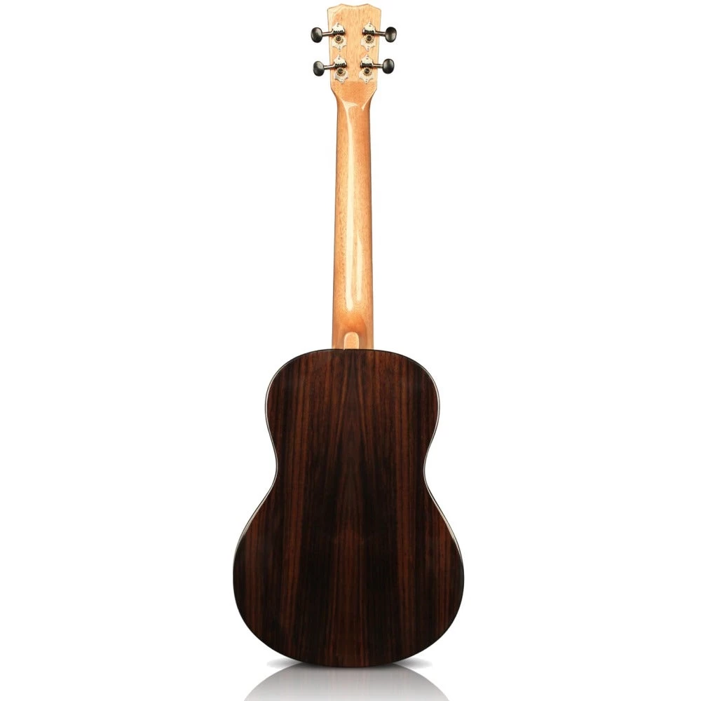 The 22 Series was created to bring the most popular guitar tonewood combination of spruce and Indian rosewood to the ukulele. The 22B is a baritone sized ukulele featuring a solid spruce top paired with Indian rosewood back and sides, rosewood bridge, fingerboard, and headstock veneer, and mahogany neck. The aesthetic is subtle and refined, with a sleek high gloss finish, and timeless hand-inlaid wooden rope rosette and matching purfling.
