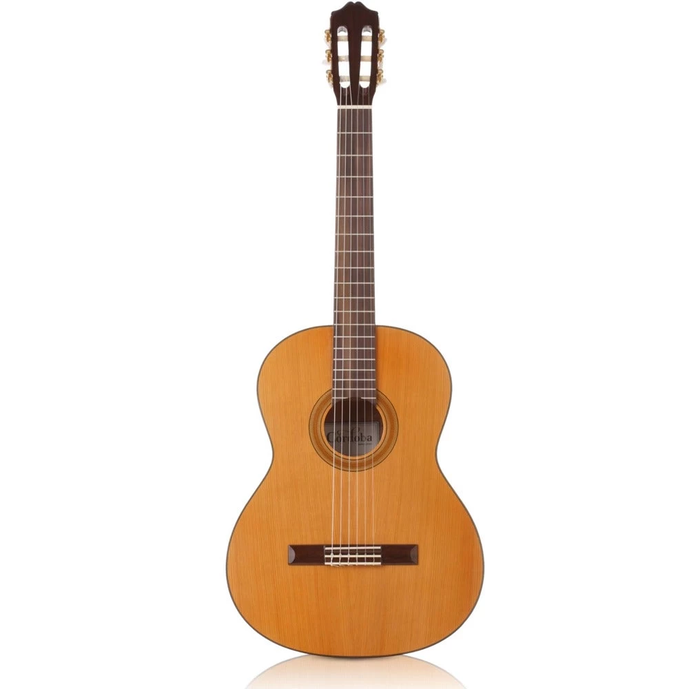 One of the most popular models and a staple in the Iberia Series lineup, the Cordoba C3M is a full-sized, handcrafted guitar. It is built with the traditional Spanish fan bracing, a solid cedar top and mahogany back and sides. The C3M also has a hand inlaid wooden rosette, a rosewood fingerboard, and nickel plated tuning machines with pearl buttons. The “M” in the title stands for its light matte finish.