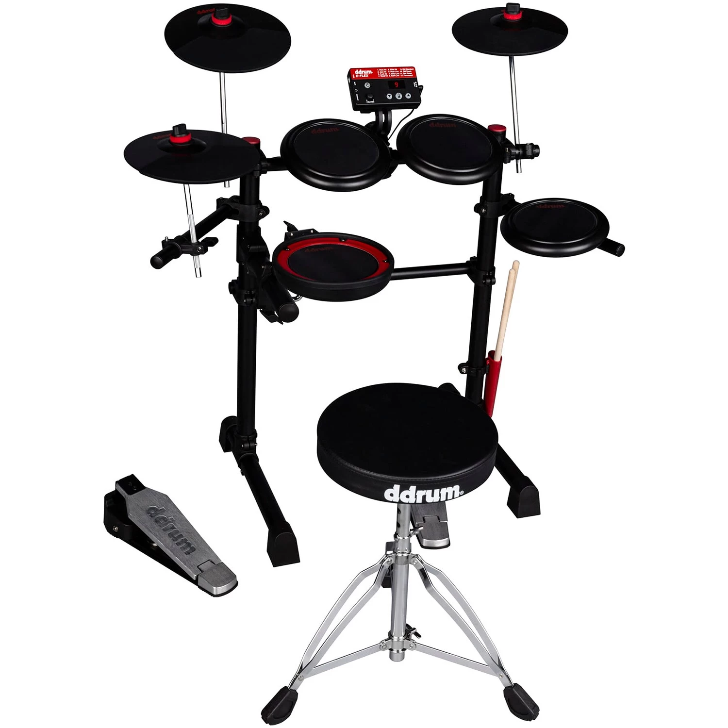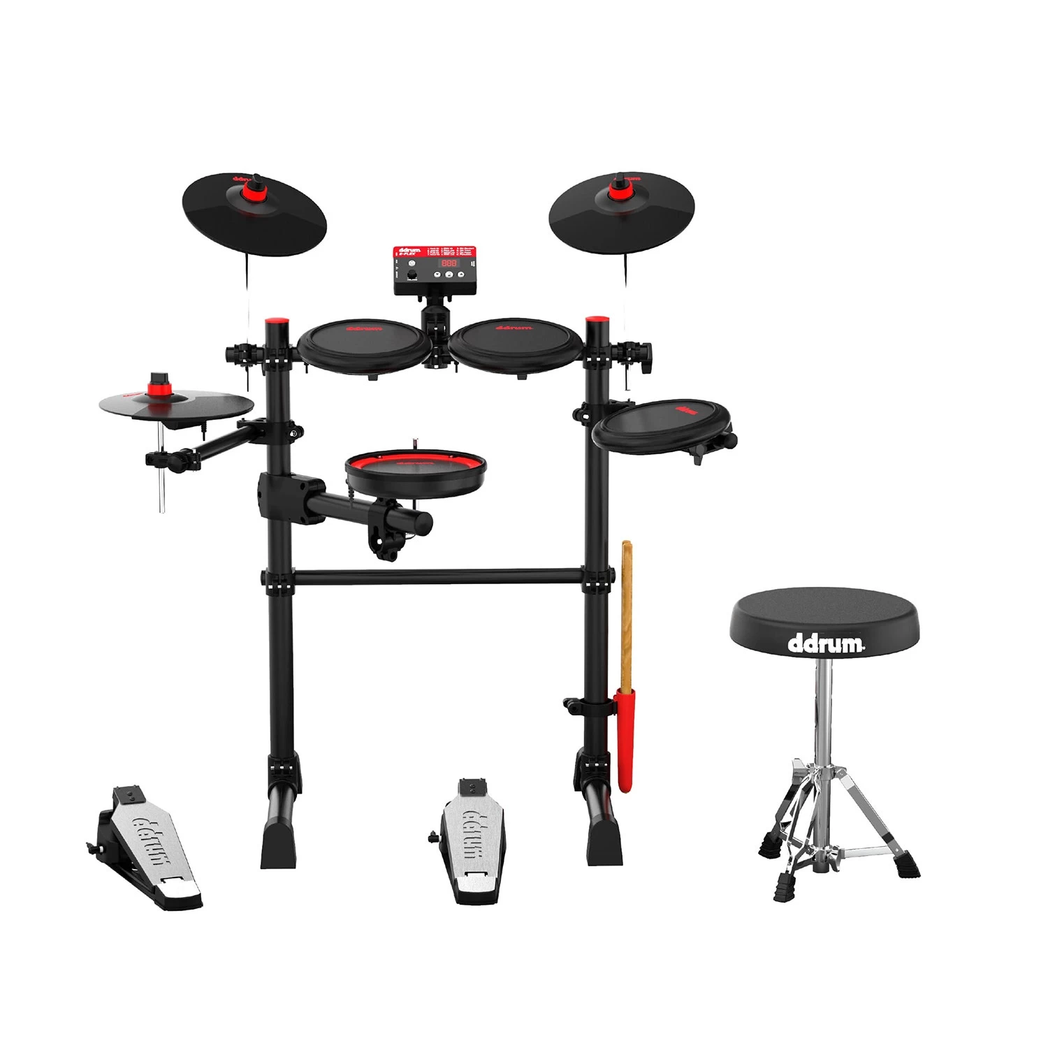 For 2022, ddrum introduces a new electronic drum kit that is great for beginners as well as any drummer looking for a simple and quiet practice solution. The ddrum E-Flex has great feeling and responsive mesh heads on all 3 toms and the 2-zone snare pad. Both the hi-hat and bass drum controller pedals were designed to feel and respond naturally while keeping the set-up simple. The E-Flex also features a Double Bass Mode, allowing a player to use the hi-hat controller as a second bass drum. The all new ddrum E-Flex electronic drum set is a complete all-in-one solution for a beginning drummer, or any drummer looking for a quiet practice kit with a small footprint.