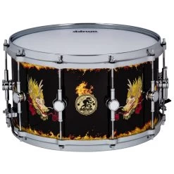 Large and in charge, the Vinnie Paul signature snare takes a maple wood snare to its tonal extreme. Crafted from 8 plies of North American maple, this snare delivers a thunderous punch to the chest, with a high caliber crack on top. 10 double sided turret lugs combined with the die cast hoops to add tuning stability and provide a solid rim shot sound. Available for its initial run in a special Delmar dragon wrap with chrome shell hardware to complement and enhance any finish kit to which it is added. Premium carrying case completes this heavy hitting package.