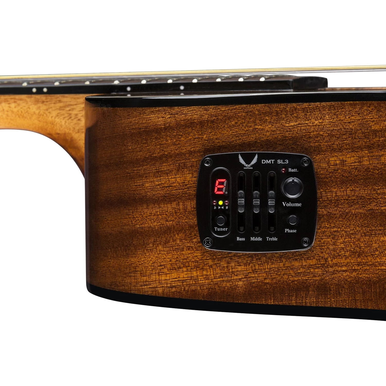 The Dean AXS Exotic Acoustic-Electric 12 String Guitar offers both style and value at an affordable price! This guitar provides gorgeous looks and a well balanced sound thanks to its KOA top and Mahogany body, which also features a smooth cutaway for easy access to high notes. The set mahogany neck has a comfortable C shape. Also features a balsamo fingerboard, pearloid dot inlays, black-chrome hardware, and DMT SL-3 electronics with 3-band EQ and built in tuner for high-fidelity sound. Get your wings today!
