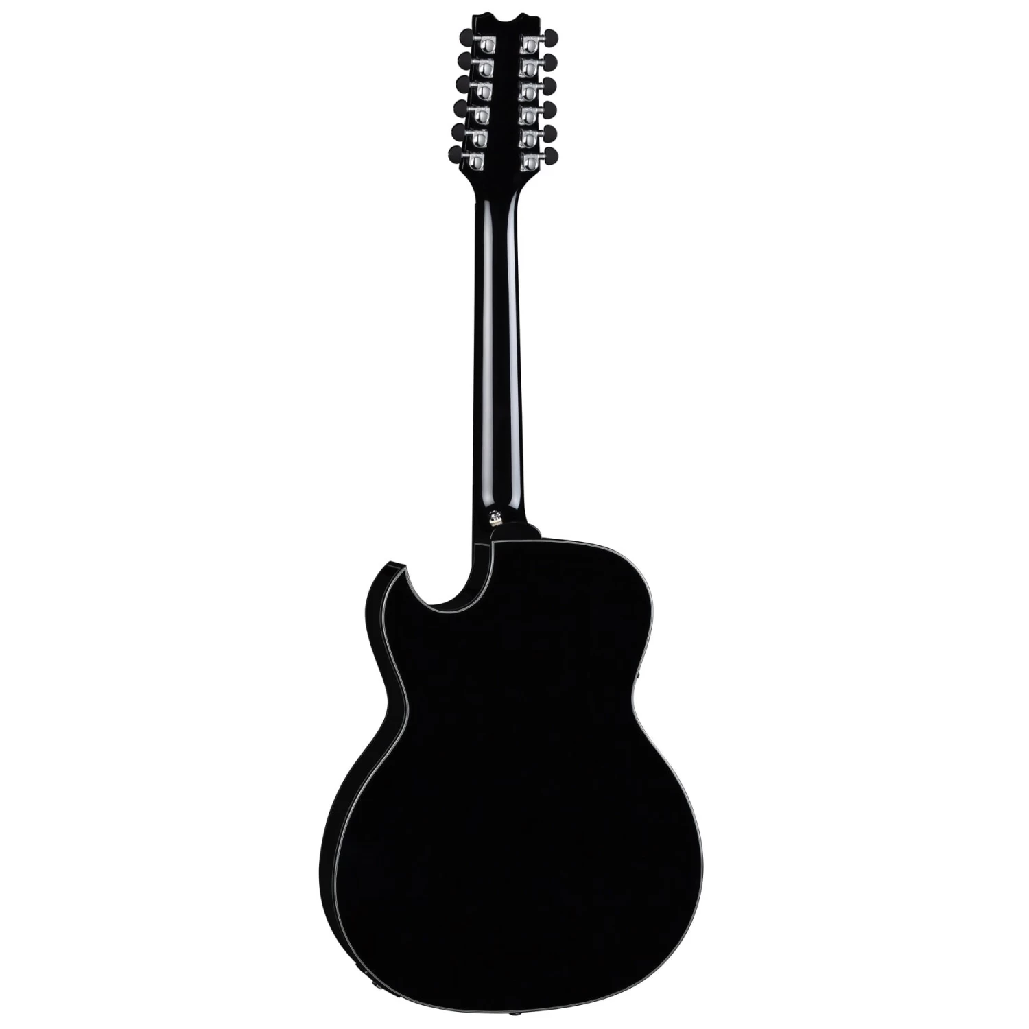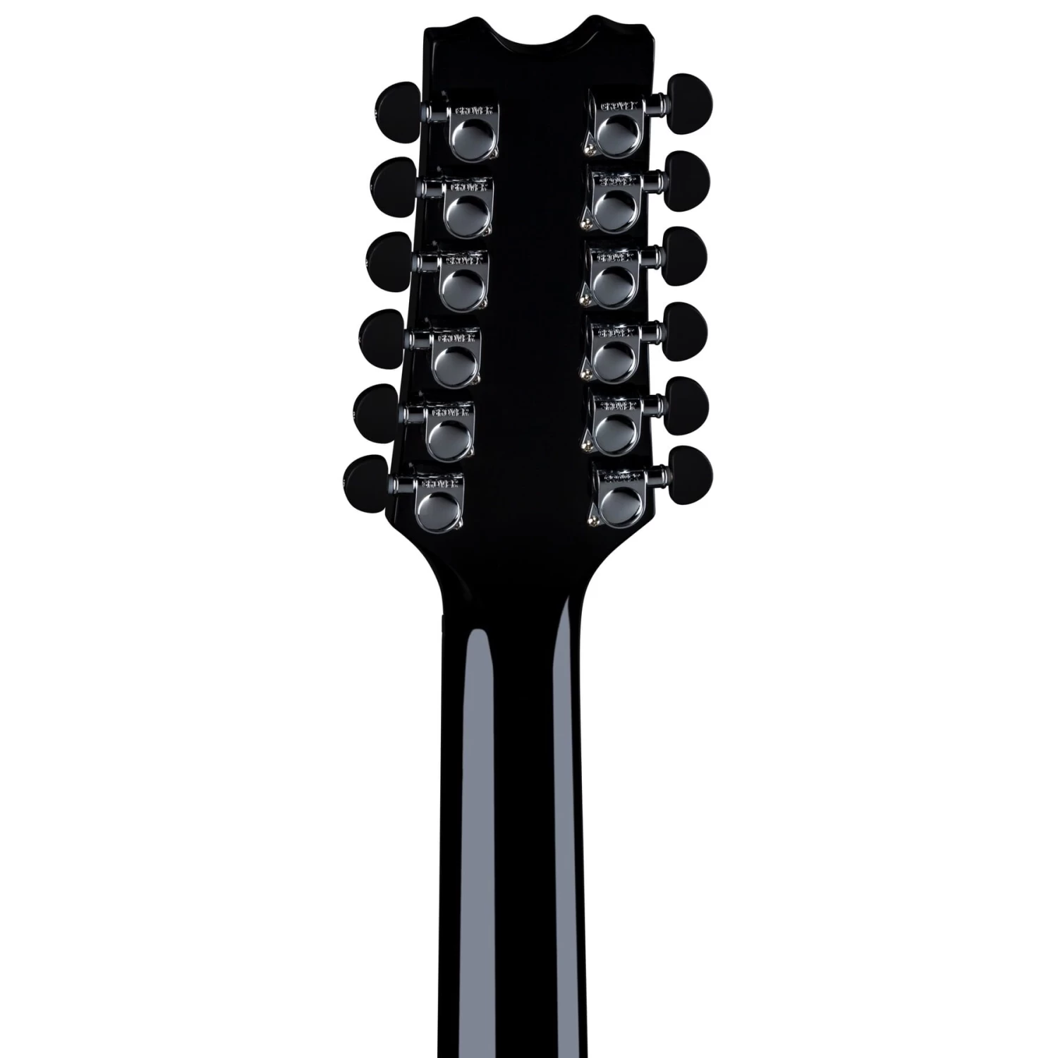 Made with mahogany, the thin body of the Exhibition 12 string adds comfort while helping to reduce feedback when plugged in. The slim D-shaped profile of the set mahogany neck is extremely comfortable for electric guitarists and features a 24-1/4″” scale. Appointments include a smooth ebony fingerboard, pearl Ultra Diamond inlays, black NuBone nut & saddle, Grover tuners, and a Fishman Presys II System for the best tones on or off the stage.