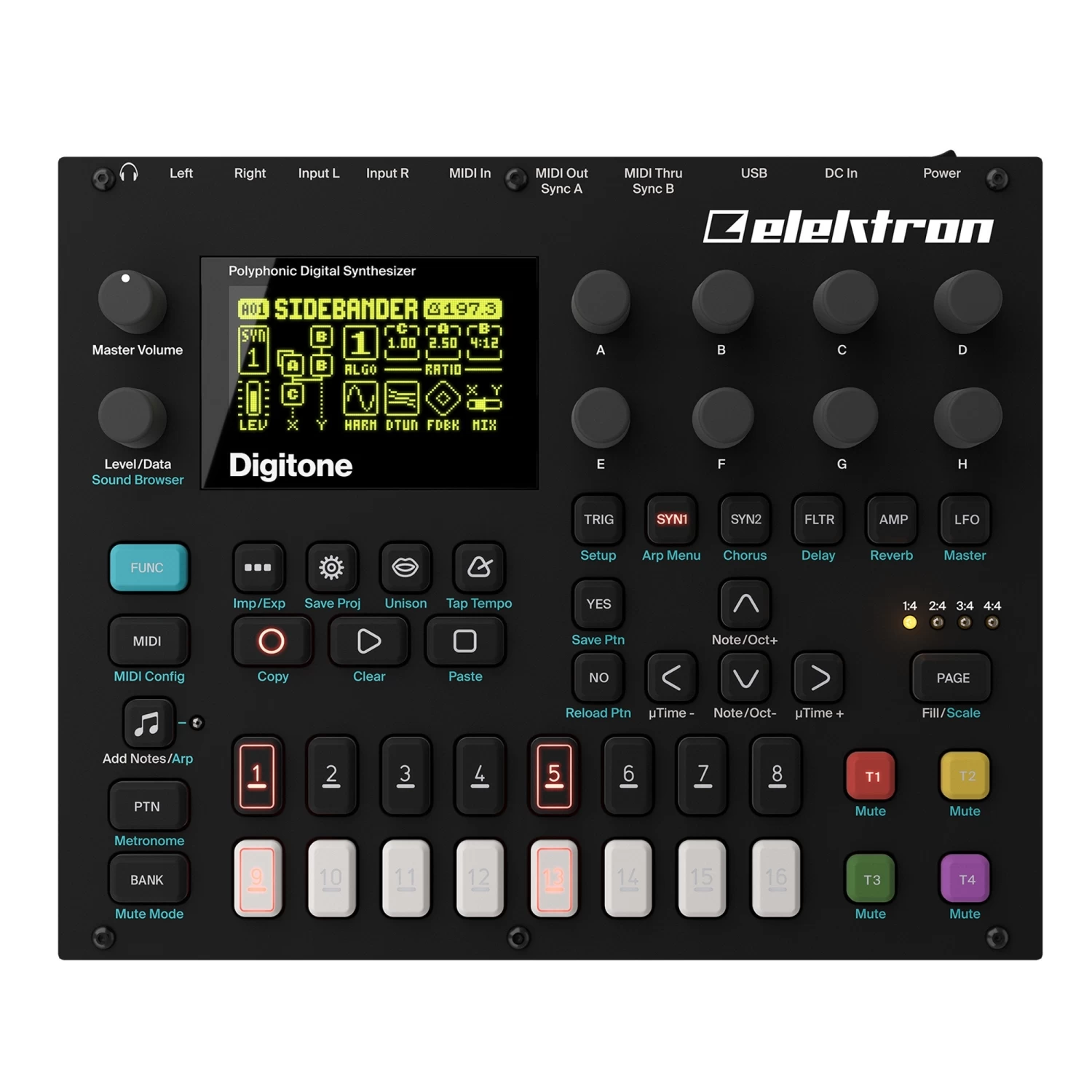 Choose from multiple FM algorithms featuring carefully selected parameters. Shape the tones with powerful filters. Arrange them with the intuitive Elektron sequencer. Round off with the stellar effects. Now enjoy the most spectacular sounds, seemingly emanating from some parallel universe.