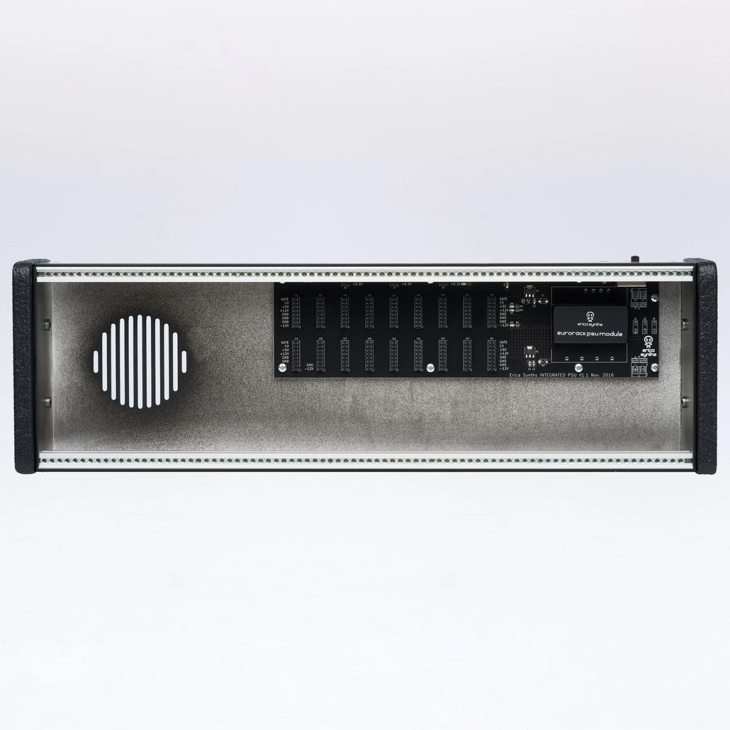 This case has integrated Erica Synths PSU capable of [email protected] and [email protected] (2.5A total), [email protected]. 12V 3.34A 100-240VAC desktop PSU included.