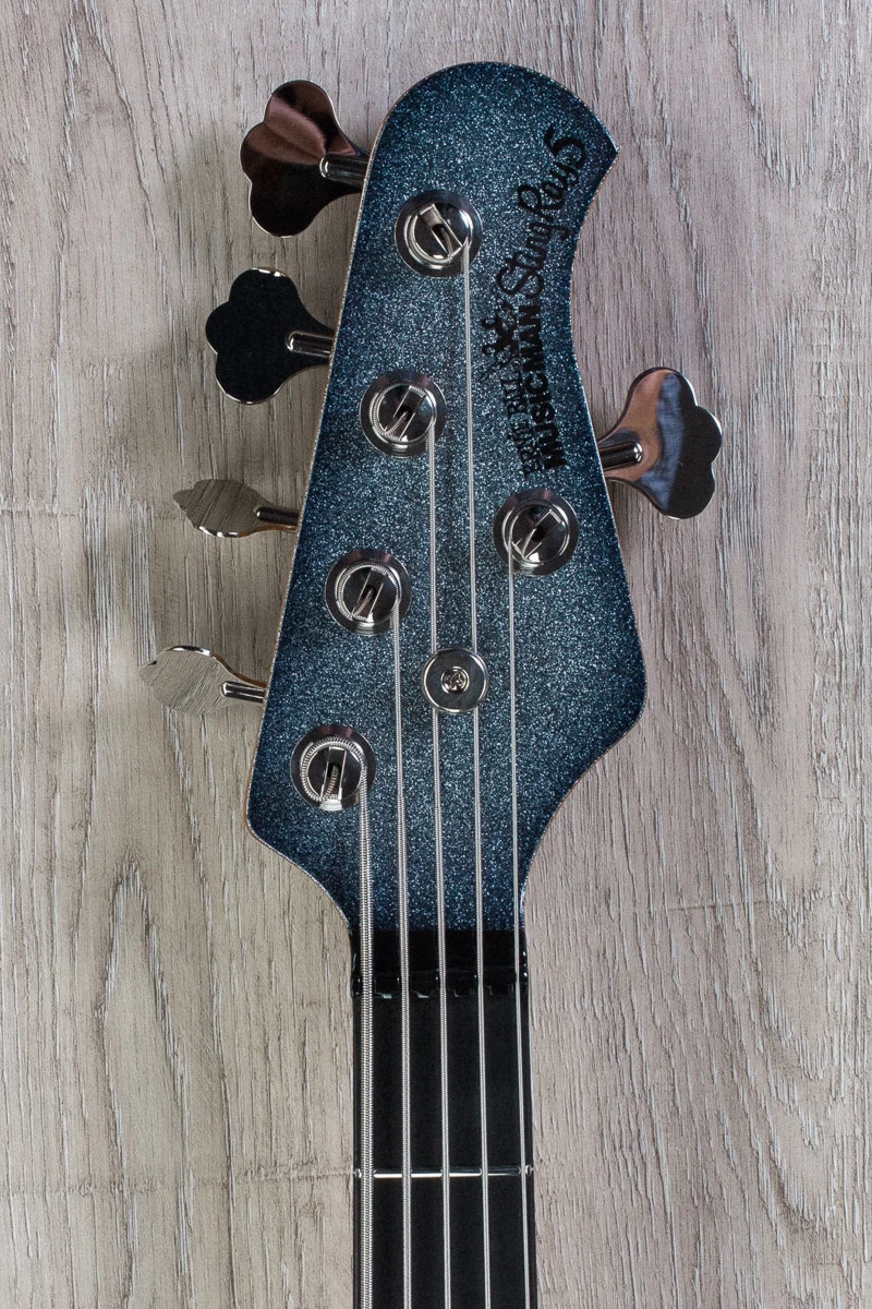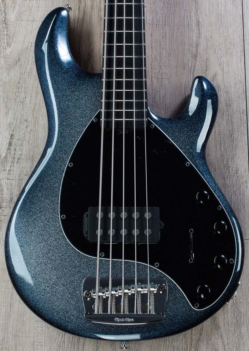 As one of Ernie Ball’s Premier Dealers, Music Store Live had access to this exclusive Starry Night bass. The configuration emphasizes all of the amazing qualities of the StingRay for an instrument that just sounds and feels unbelievable. The fretboard is made out of a jet-black ebony and has no inlays on it for a stealthy and sleek look. Don’t worry, you still have white side dots (which show up clearly on the black ebony) to help guide you along and remind you of where you are on the fretboard. The ebony board provides a brighter tone than rosewood, similar to maple, but with a more balanced and present mid-range, which helps the bass stay defined and punchy in a dense mix. The stainless steel frets on the fretboard add a touch of brightness to the tone as well as lasting virtually forever. The highly figured and roasted maple neck is finished in gunstock oil and wax for a stain feel that makes you just want to keep playing this bass for days. The limited edition Starry Night sparkle burst finish will ensure that you have a bass with aesthetics shared by only a small handful of people in the entire world.