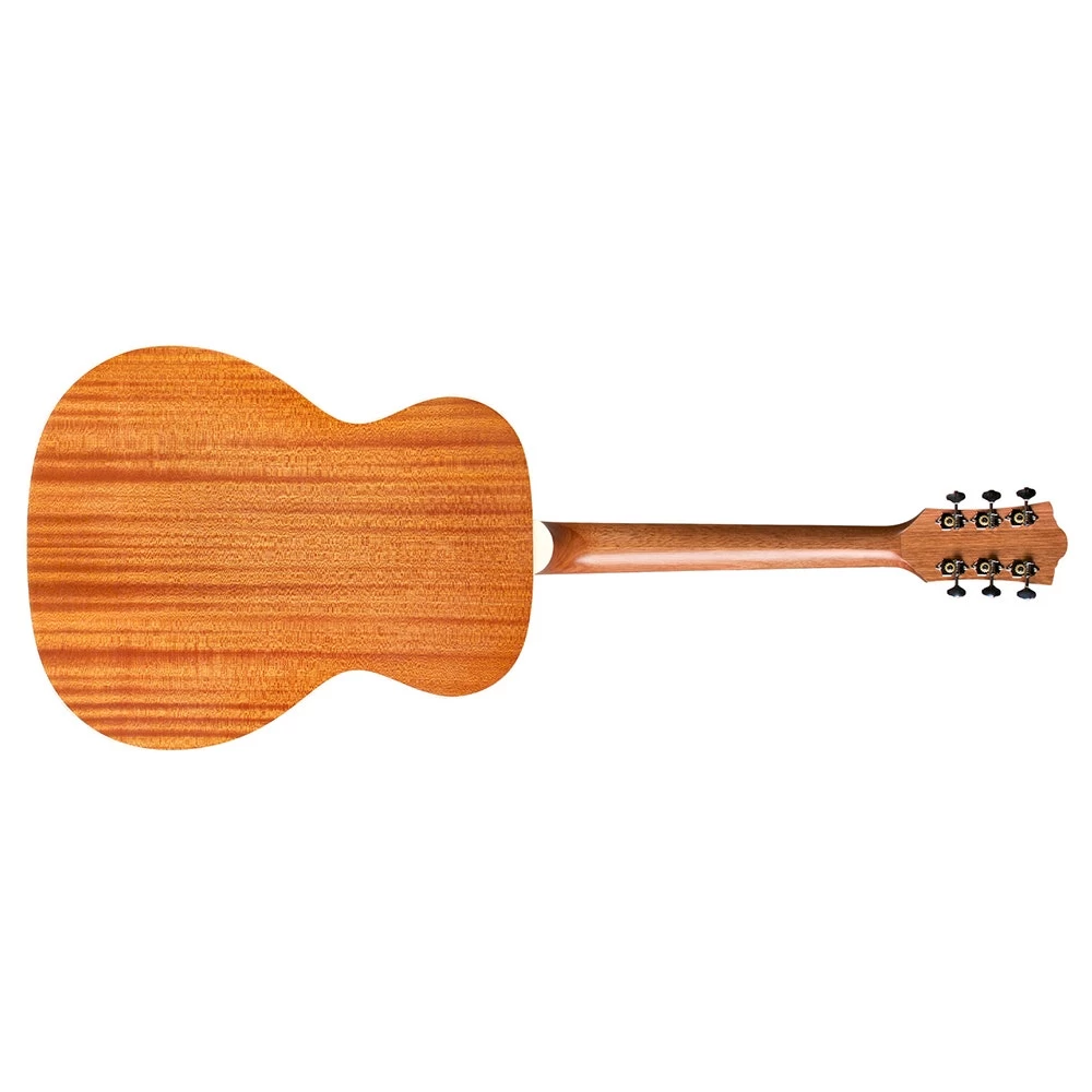 This mid-sized orchestra shaped acoustic is equally suited for strumming and fingerpicking, and produces a sweet, balanced tone. The perfect choice for the versatile musician, the OM-240E features a solid Sitka spruce top, mahogany sides, and arched mahogany back. Guild’s signature arched back design allows for great volume and projection, long sustain, and a lush, full sound. The OM-240E features Guild’s Fishman-designed AP-1 electronics, a pau ferro fingerboard and bridge, bone nut and saddle, pearloid rosette, period-correct tortoiseshell pickguard, and a matte polyurethane finish. Available in Natural.