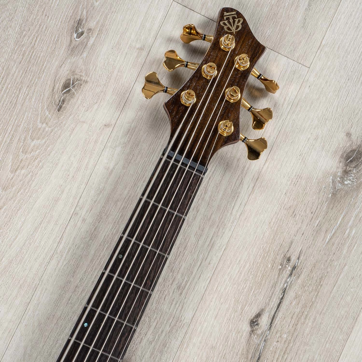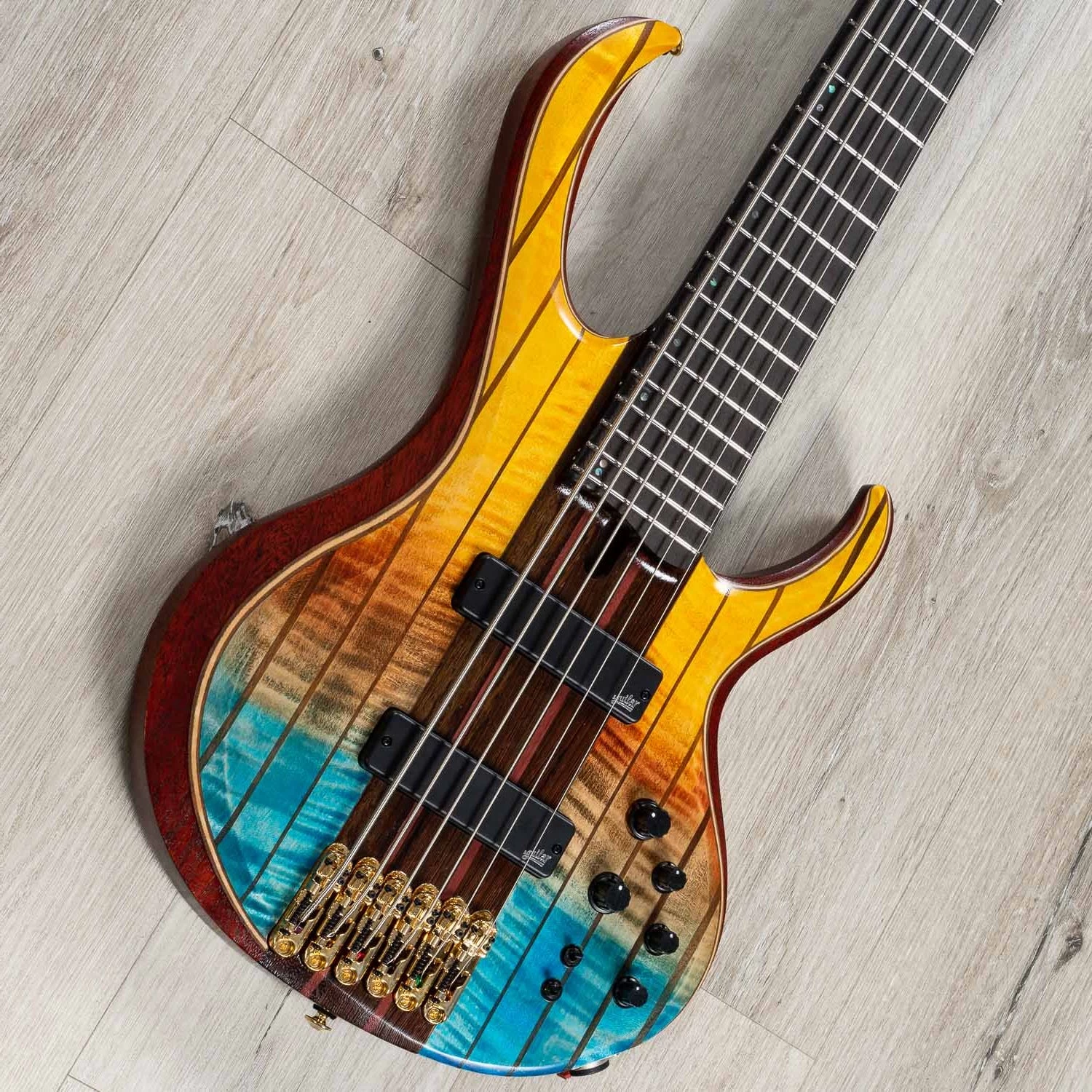 Ibanez is pleased to introduce the BTB1936 to the Premium BTB line. The BTB1936 features a Curly Maple with Walnut stripes top & back. The African Mahogany body delivers superior tonal clarity and sound. The sleek body has a curved bevel that helps create a more elegant feel. Durable stainless frets offer bright tone, and the BTB1936 features a zero fret for accurate intonation and minimal string height. The zero fret also helps the open strings sound like the fretted notes. The MR5S bridge allows for a wide intonation adjustment range, and each isolated bridge is securely locked down to the body for maximum vibration transfer without interference. The Ibanez Custom Electronics 3-band EQ, EQ bypass switch, and 3-way midfrequency switch allow for precise tonal control (250 Hz, 450 Hz, and 700 Hz). When the EQ bypass is activated, the treble-tone control knob works as a passive tone control for the instrument’s output.