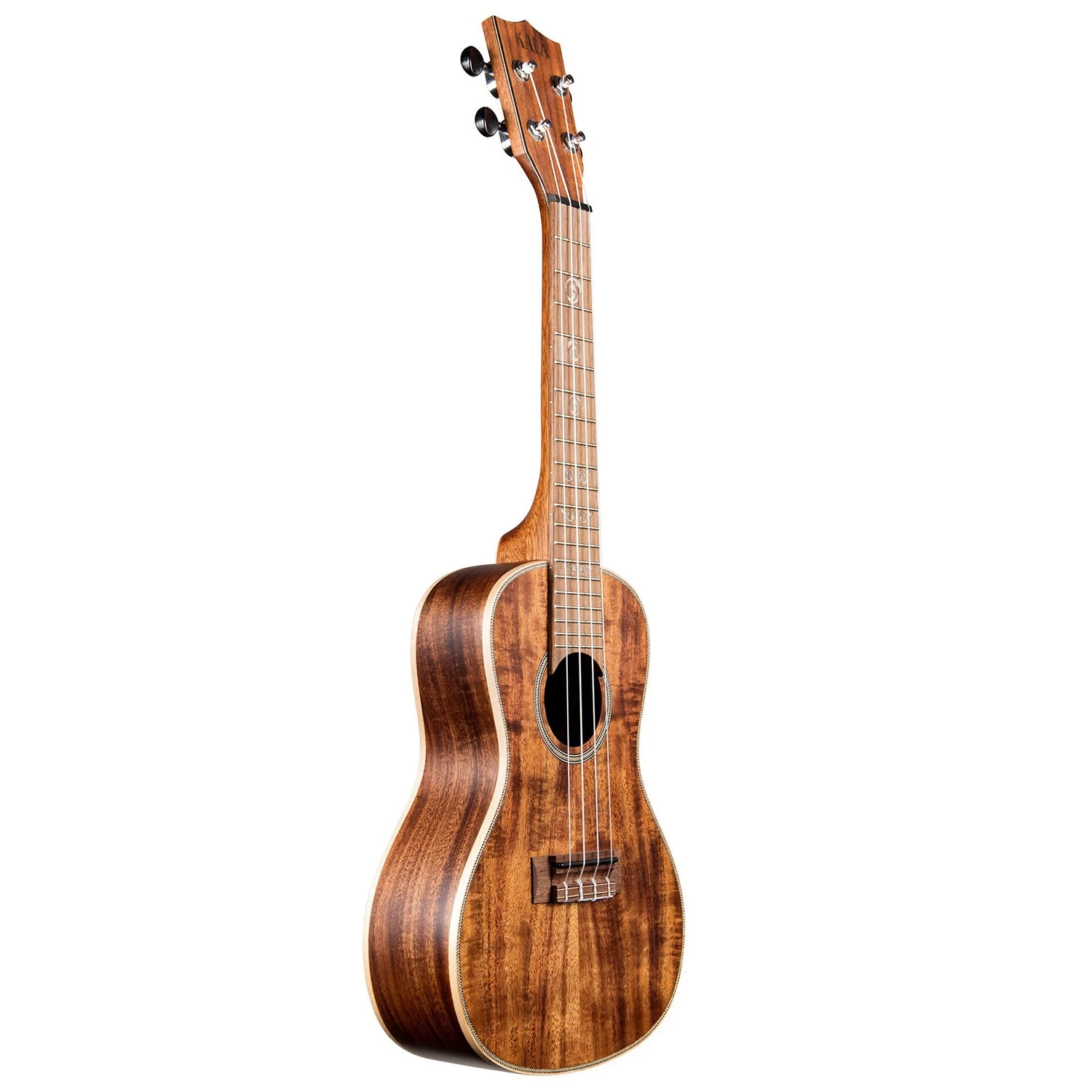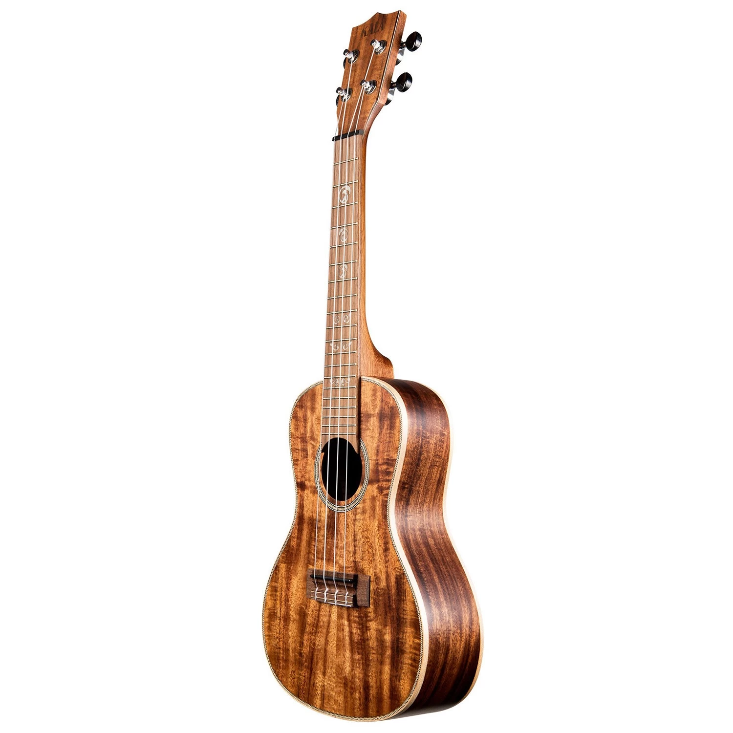 The Solid Acacia line bears curling that is similar to its close relative Koa. The Acacia’s resemblance to its cousin is apparent in its beautiful, varied grain pattern. The all solid wood allows the sound to improve as it is broken in.