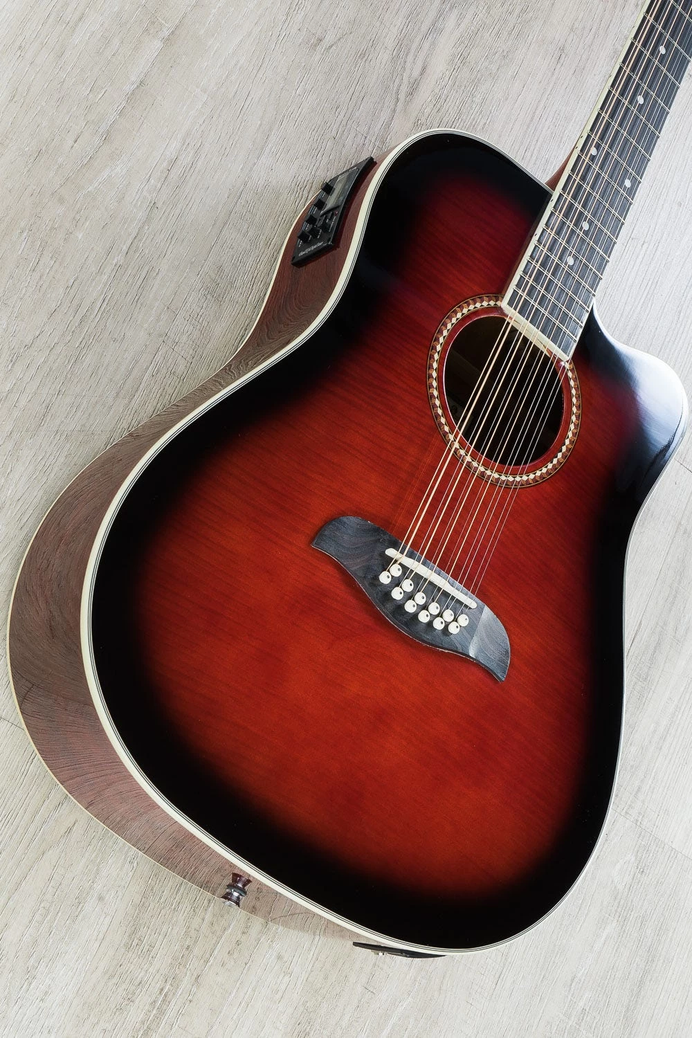 Oscar Schmidt OD312CE 12-String Dreadnought Acoustic-Electric Guitar – Black Cherry