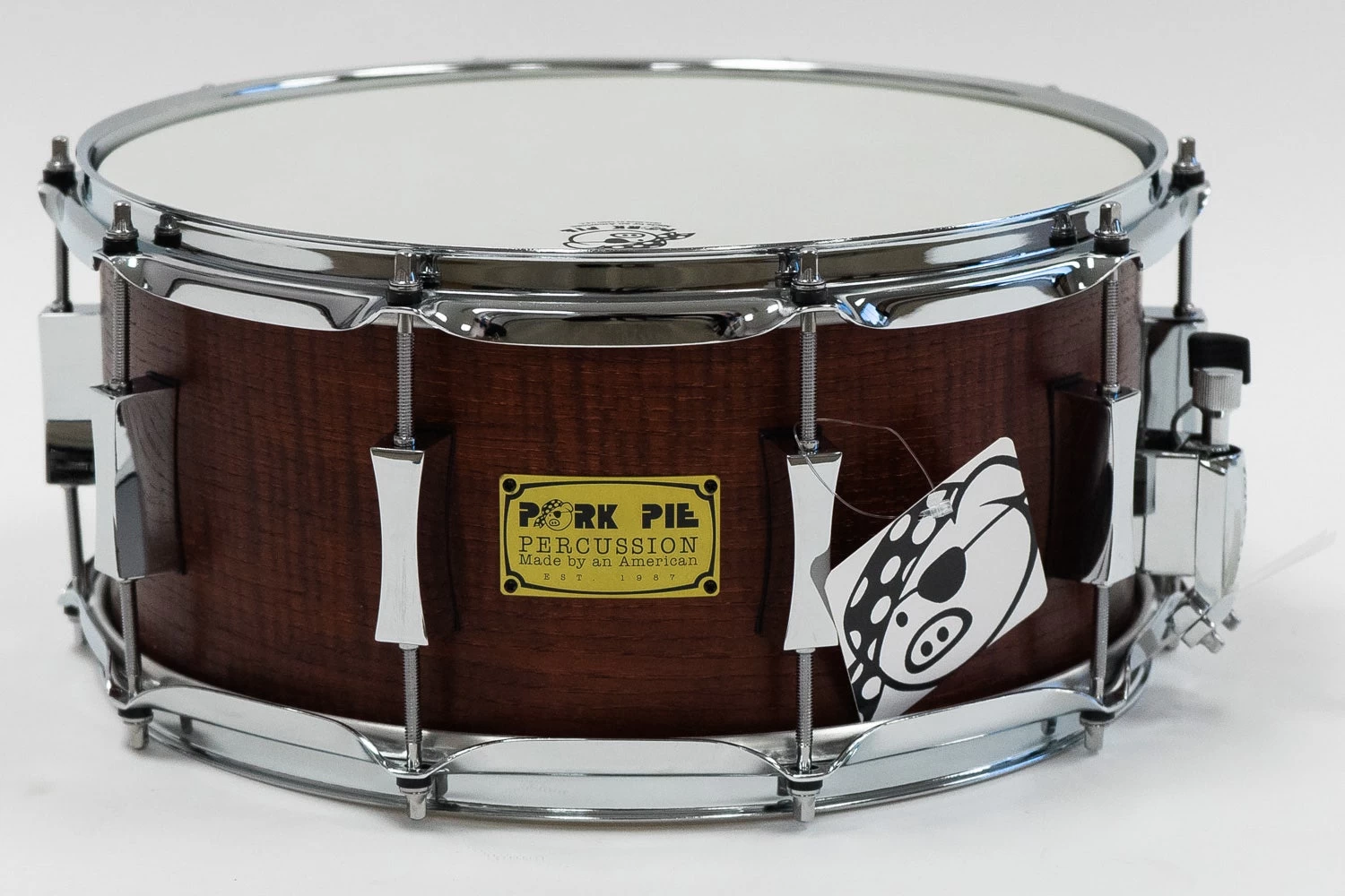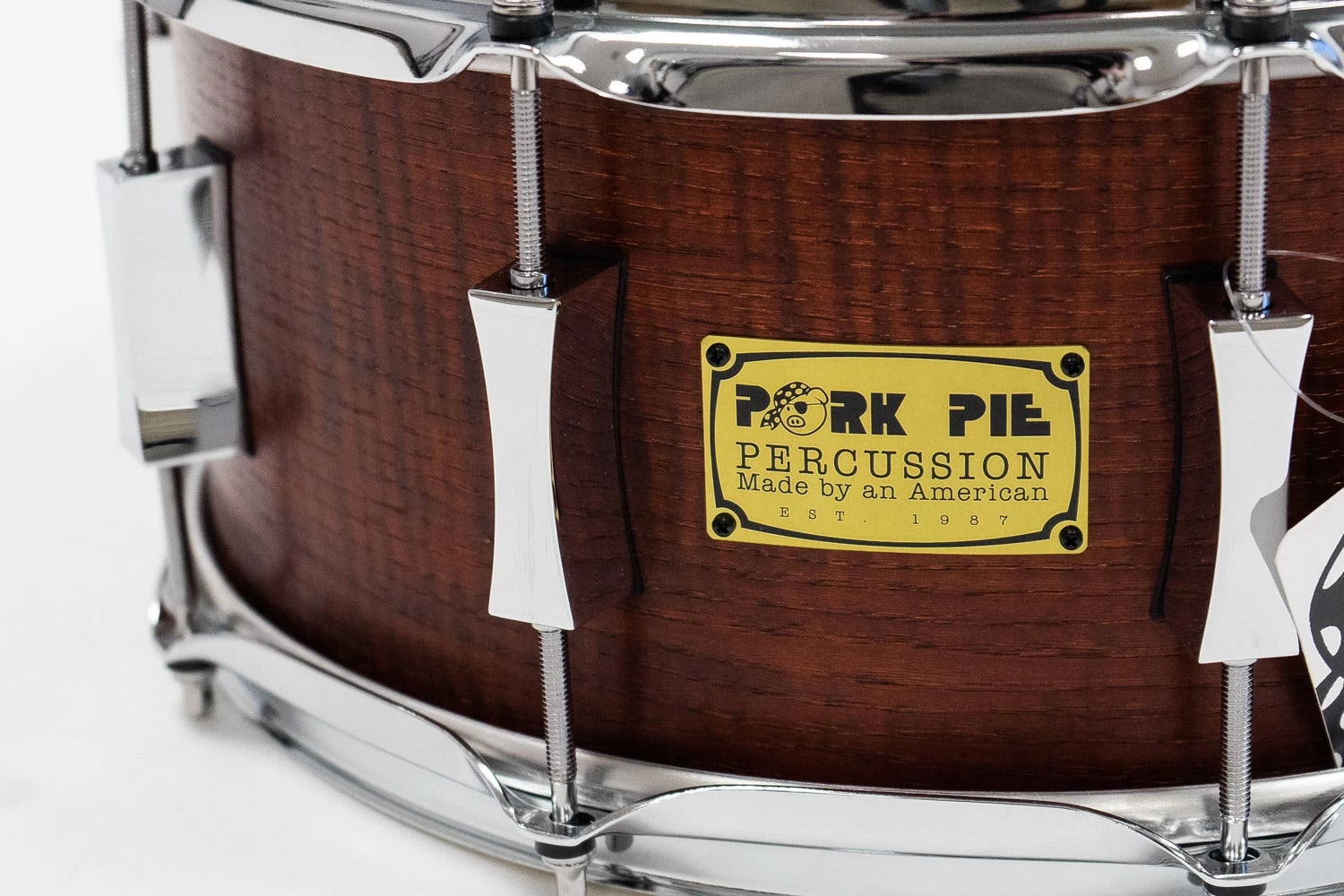 Pork Pie Percussion 6.5” x 14” Snare Drum, 5-Ply Hickory Fiddleback, Rosewood Satin