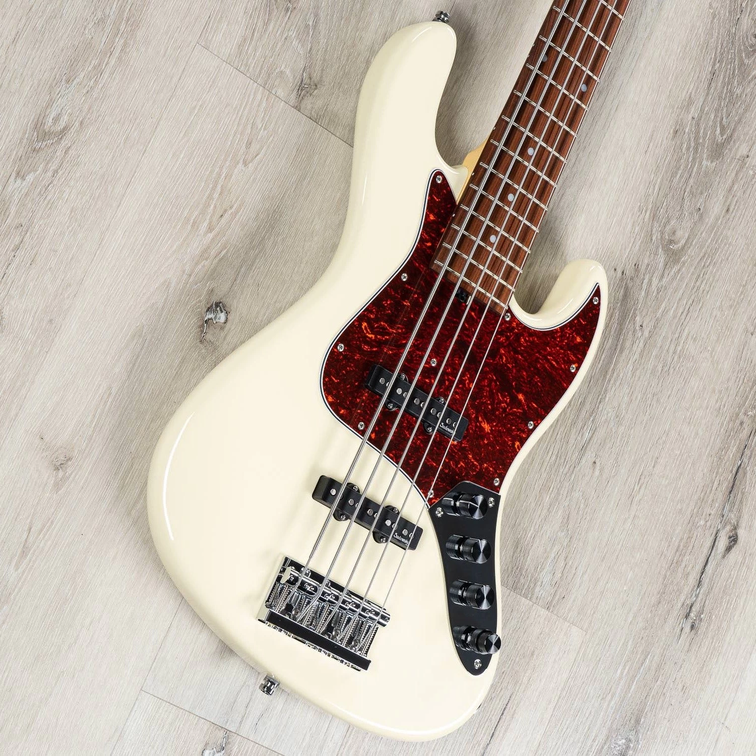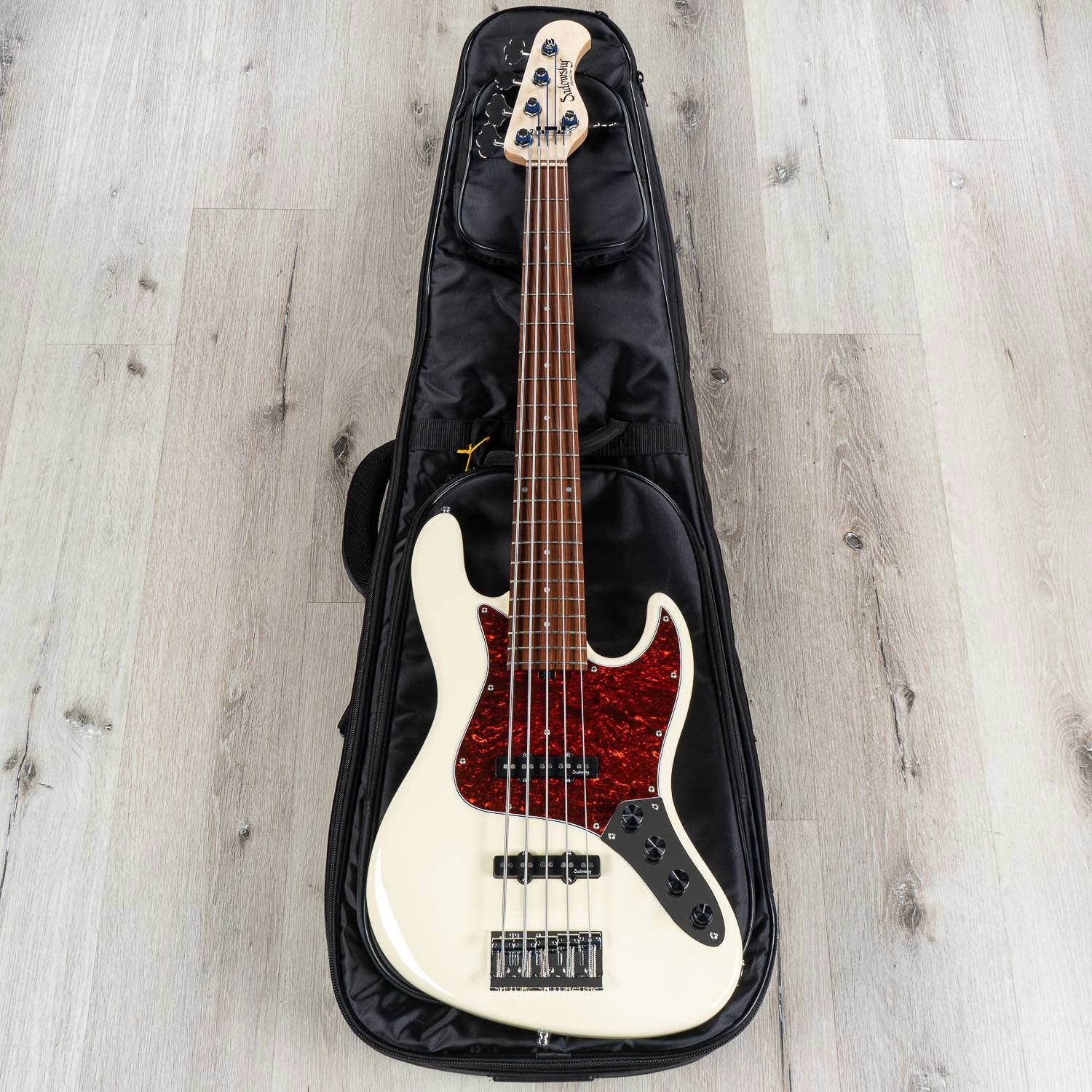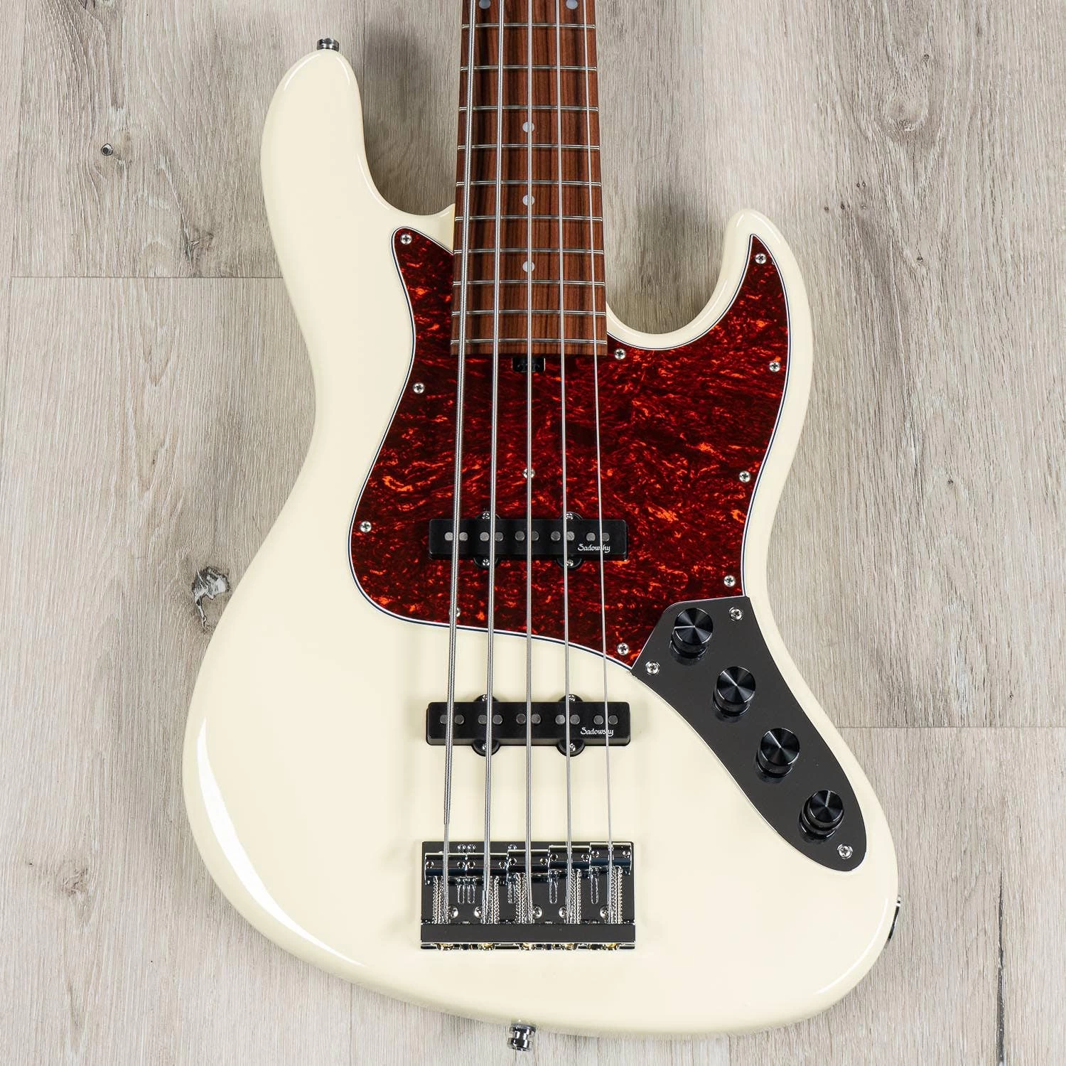 Roger Sadowsky’s goal was always to further improve an already very successful bass design by making a number of detailed improvements. Along with the electronics, which he developed by himself, he succeeded to raise the well-known J/J bass sound to a new level, so today you can speak of a typical Sadowsky tone: Never harsh or shrill sounding, with strong, powerful but never muddy bass, with present, but not too aggressive mids, and a sweet and airy treble range. All features of this modern bass sound can also be found in the 21-Fret Vintage J/J basses of the MetroLine series made exclusively in Germany. All basses are lightweighted with approximately 8.4 pounds. A good choice for bass players who are looking for a lightweight solution for the stage in addition to a modern bass sound. Special features of the Vintage J/J basses of this series are the active electronics with true bypass, Vintage Tone Control, treble and bass boost, ultralight Hipshot tuners and the special Sadowsky bridge for quick string release. This 5-string bass in sleek undersized J-Style shaped red alder body comes in Solid Olympic White High Polish finish.