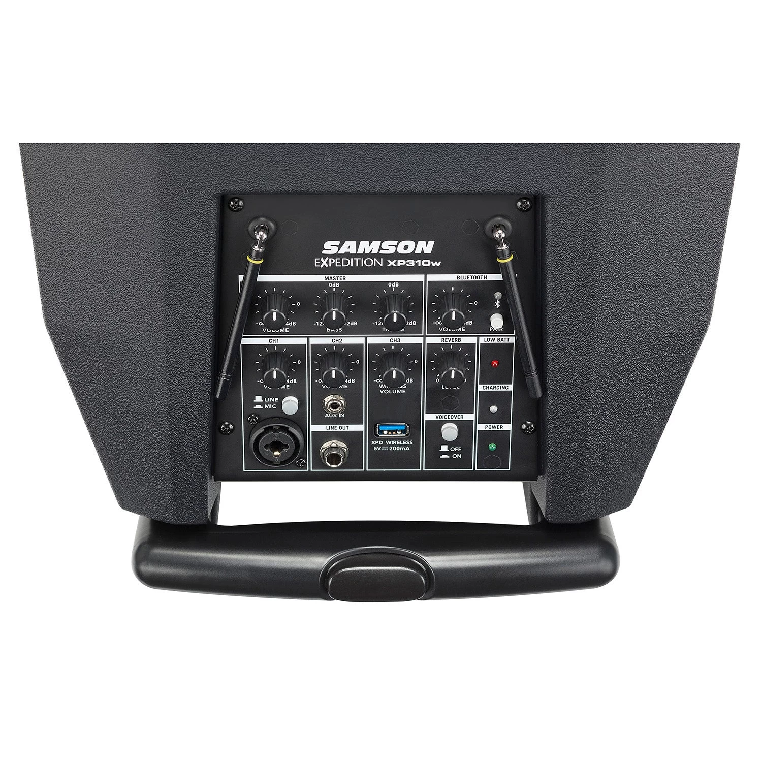 The Samson Expedition XP310w Rechargeable Portable PA answers the call of those who need great-sounding mobile audio. With 300 watts of power, 12 hours of battery life, a top-mounted 4-channel mixer and Bluetooth, the XP310w delivers huge sound to musicians, DJs or those enjoying a variety of outdoor events. It also includes a frequency-agile wireless microphone for cord-free performance.