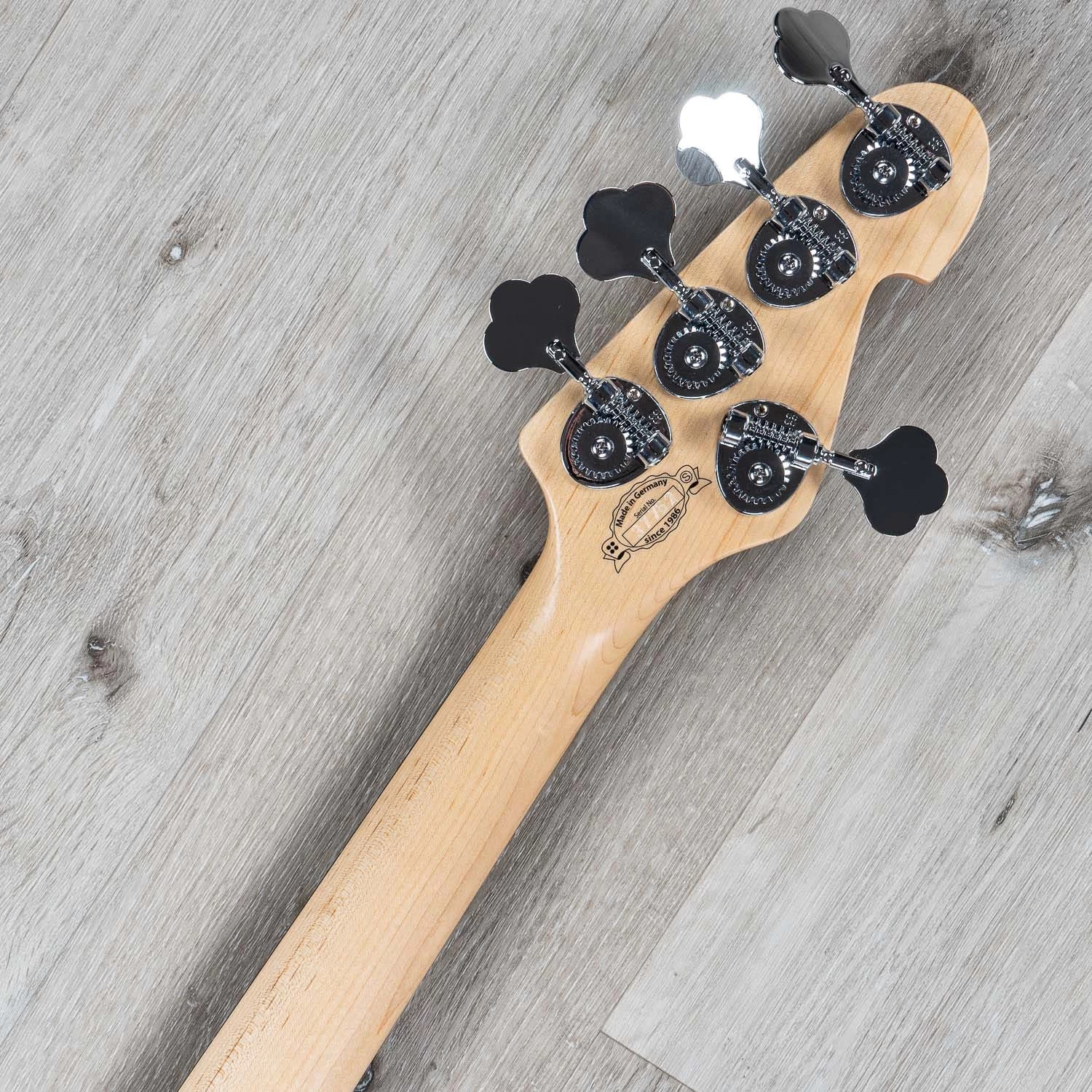 As well as being effortless to play, this Sandberg VM-5 comes loaded with some powerful and thoroughly kickass electronics. The first thing you’re likely to notice are the huge pole pieces on the P-style pickup. Next you’ll probably notice that the split-coil pickup is placed in the opposite orientation that you might traditionally find it. This is a brilliant adaptation of a tried and true design. By placing the B, E, and A string pole pieces closer to the bridge you end up with a tighter, punchier, and more focused tone on the bass strings while having a slightly fuller and rounder sound out of the D and G treble strings. It’s subtle… But we definitely dig it. The resulting tone is one that will sit perfectly in a mix, no matter how many other instruments are playing along with you, and will never be muddy or indistinct. Add to that, the zero fret, and you truly have a bass with even response across all strings AND fretted as well as open strings.