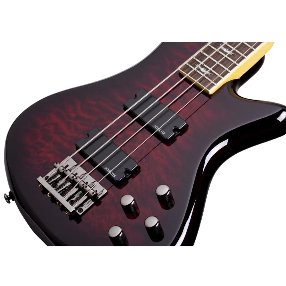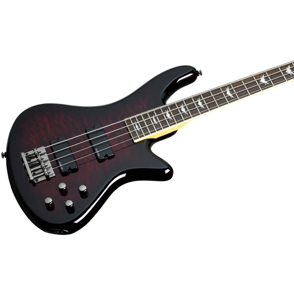 The Stiletto Extreme-4 is a 4-string electric bass guitar that delivers that Schecter sound and distinctive looks. The Stiletto Extreme-4 boasts a mahogany body with a figured maple top, maple neck, and 24-jumbo-fret rosewood fingerboard for a superb playing experience. The Extreme-4’s 2 Schecter bass humbuckers with Active EQ give you total control over dialing in your own distinctive sound. If you want your tone to be just as impressive as your axe’s looks, the Schecter Stiletto Extreme-4 is the bass for you.