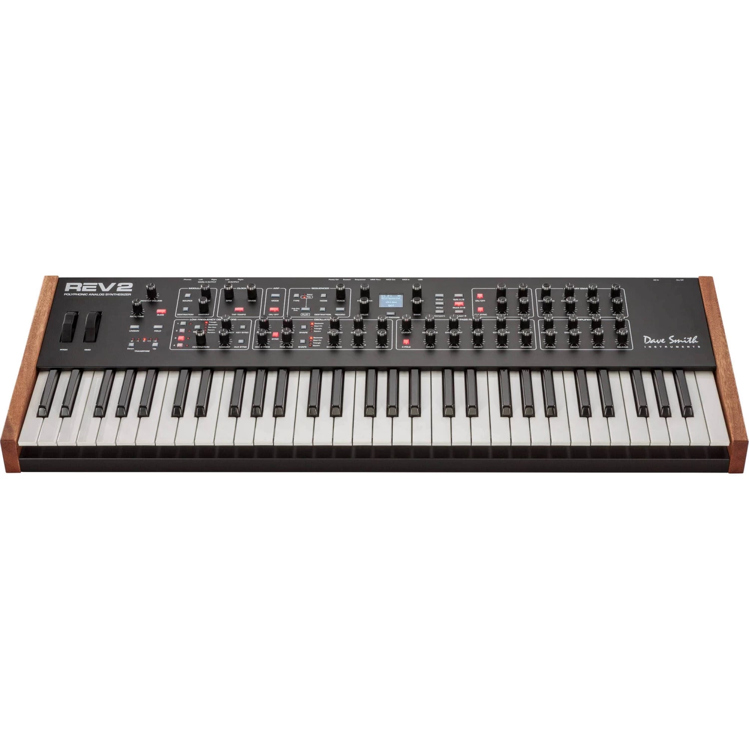 All of this polyphonic power is packed into a five-octave, premium-quality, semi-weighted keyboard with velocity and channel aftertouch. Other road-worthy features include an integrated power supply, USB support, and a crisp OLED display, making the Prophet Rev2 an ideal instrument for gigging or recording, and an analog powerhouse like no other.