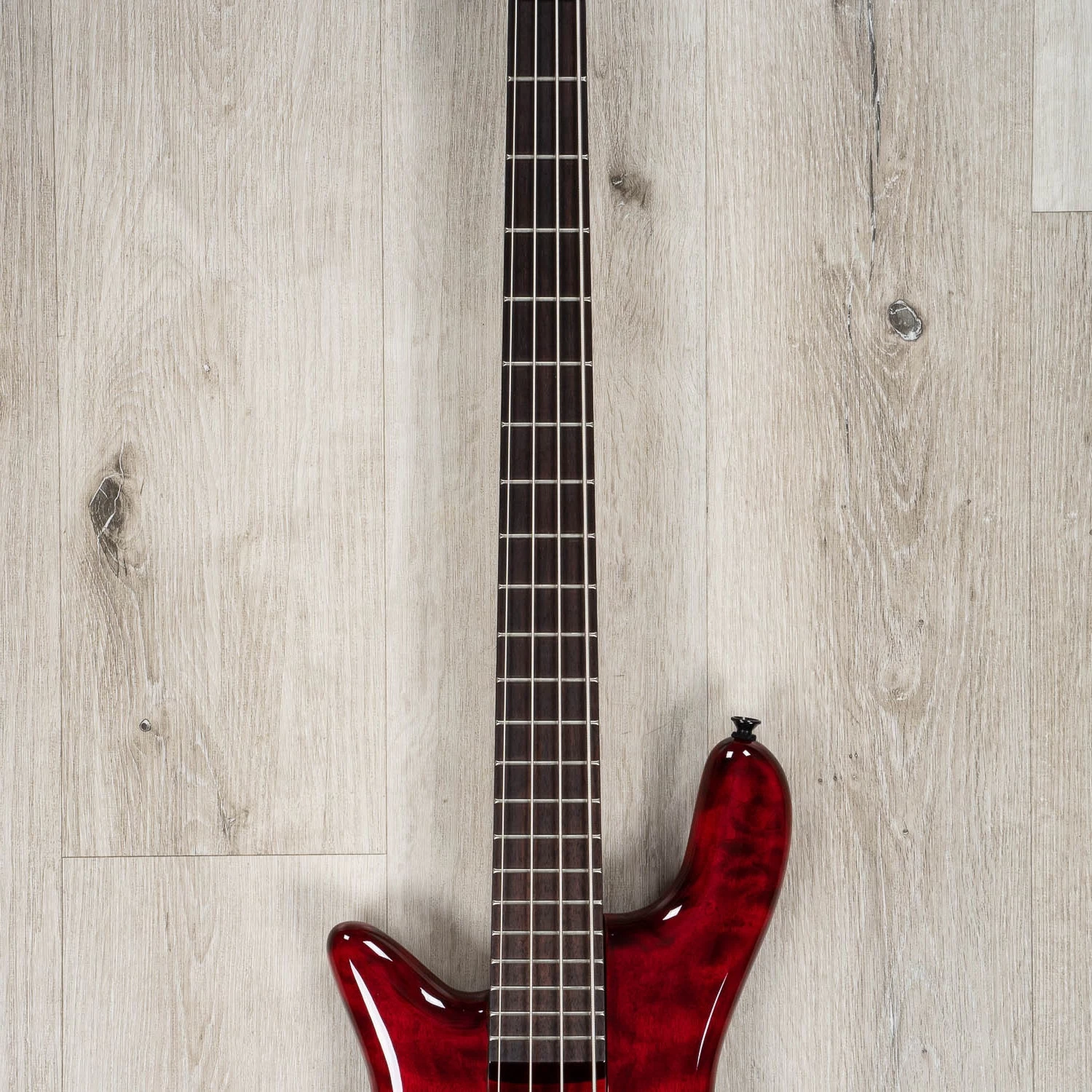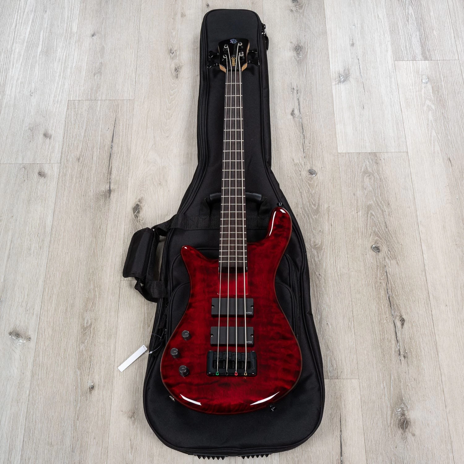 Continuing a 40-year legacy of innovation and top-notch craftsmanship, Spector’s Bantam 4 is a short-scale powerhouse that packs a serious punch. With a 30” scale length and a carefully chambered body, the Bantam is lightweight and extremely comfortable to play. The Bantam features the classic NS body style that is fully carved and contoured to the player’s body using chambered Alder and a gorgeous Quilted Maple top. The deep-inset bolt-on neck ensures the utmost resonance and projection, while providing an effortless playing experience with its perfectly carved neck profile and fast 22 fret Indian Rosewood fingerboard. The Bantam is loaded with two EMG 35DC pickups, as well as an EMG BTS active EQ circuit, allowing for maximum versatility when paired with your favorite pedals and amps.