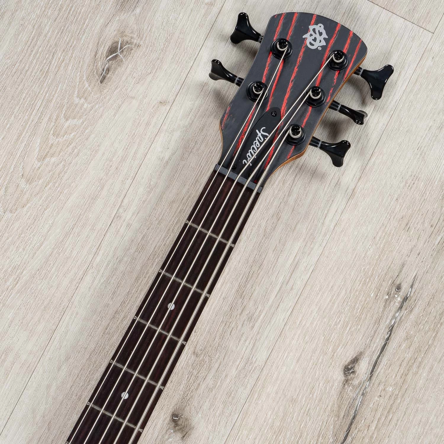 The NS Pulse represents the core of Spector’s iconic design. The three-dimensionally carved body is a trademark of the Spector brand and provides a uniquely comfortable playing experience for all bassists. This NS Pulse model features a solid Swamp Ash body paired with a three-piece Roasted Maple bolt-on neck, complete with a Macassar Ebony fingerboard. The roasting process results in a neck that provides enhanced stability & resonance, while the Macassar Ebony fingerboard ensures clear note definition and projection. This model is also equipped with EMG active pickups and Spector’s proprietary TonePump Jr. active pre-amp. This combination yields a range of impressive & aggressive noise-free tones. Perhaps the most striking feature of this bass is the sandblasted finish which highlights the unique grain pattern of each instrument. When paired with our Cinder Red or Charcoal Grey stain, the result is nothing short of stunning.