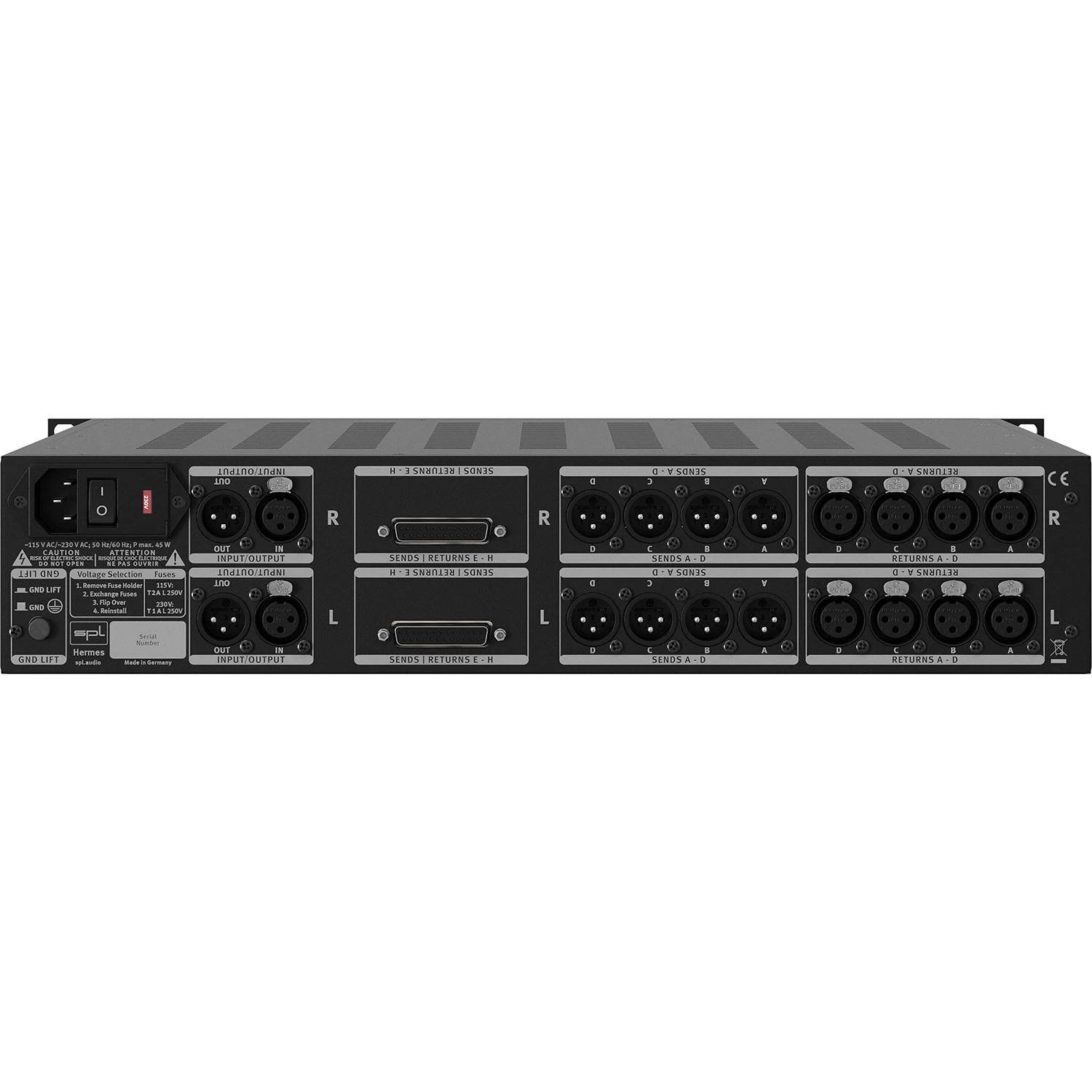 Hermes revolutionizes mastering. Now it is possible to have an audio signal processed by up to eight 2-channel processors in any order that can be stored. At the push of a button you can compare up to four complex processing chains.