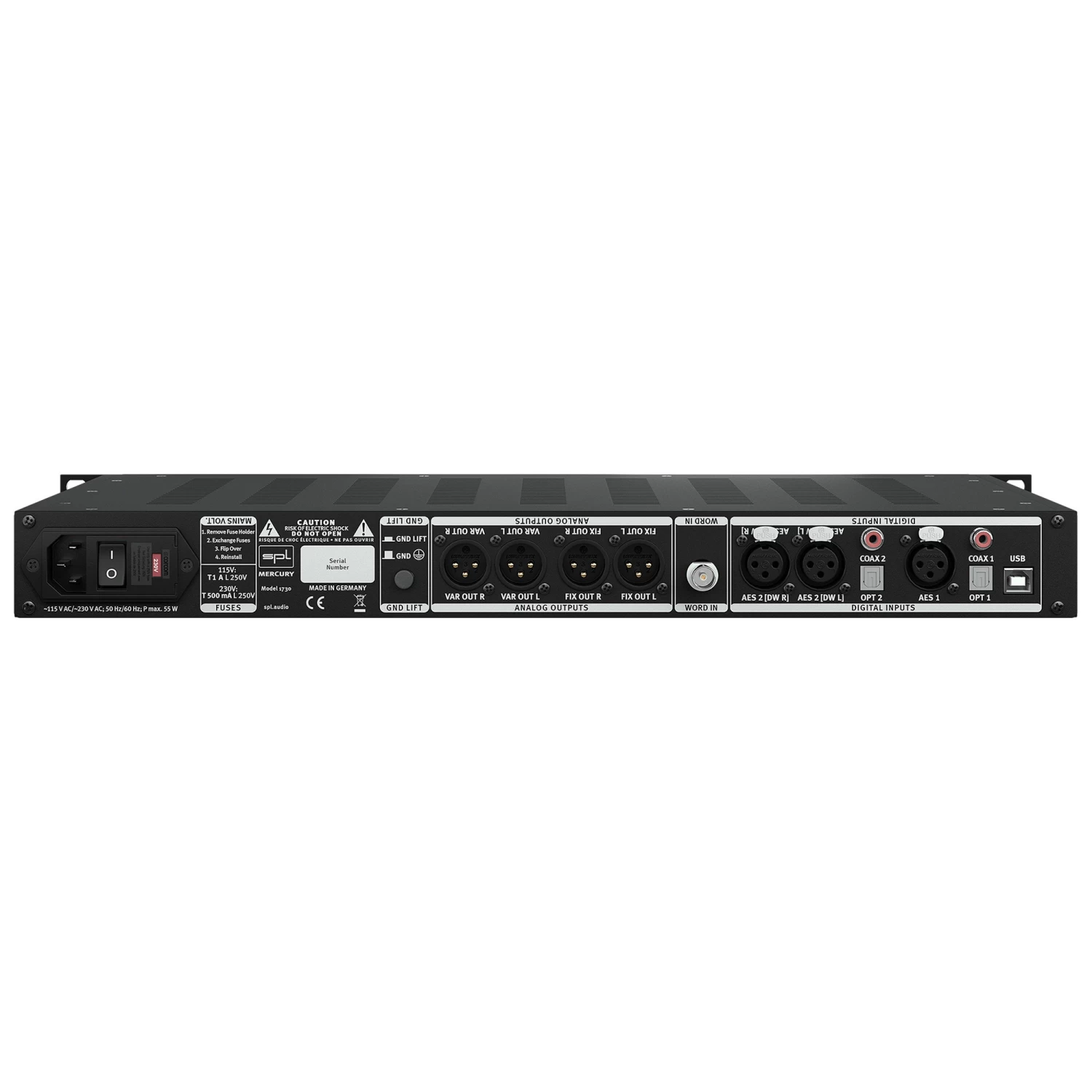 Mercury is the first mastering DA-converter in 120V technology. It offers seven digital stereo input sources, all of which can be synchronized with each other or with a word clock. The additional variable output qualifies Mercury as a monitor controller.