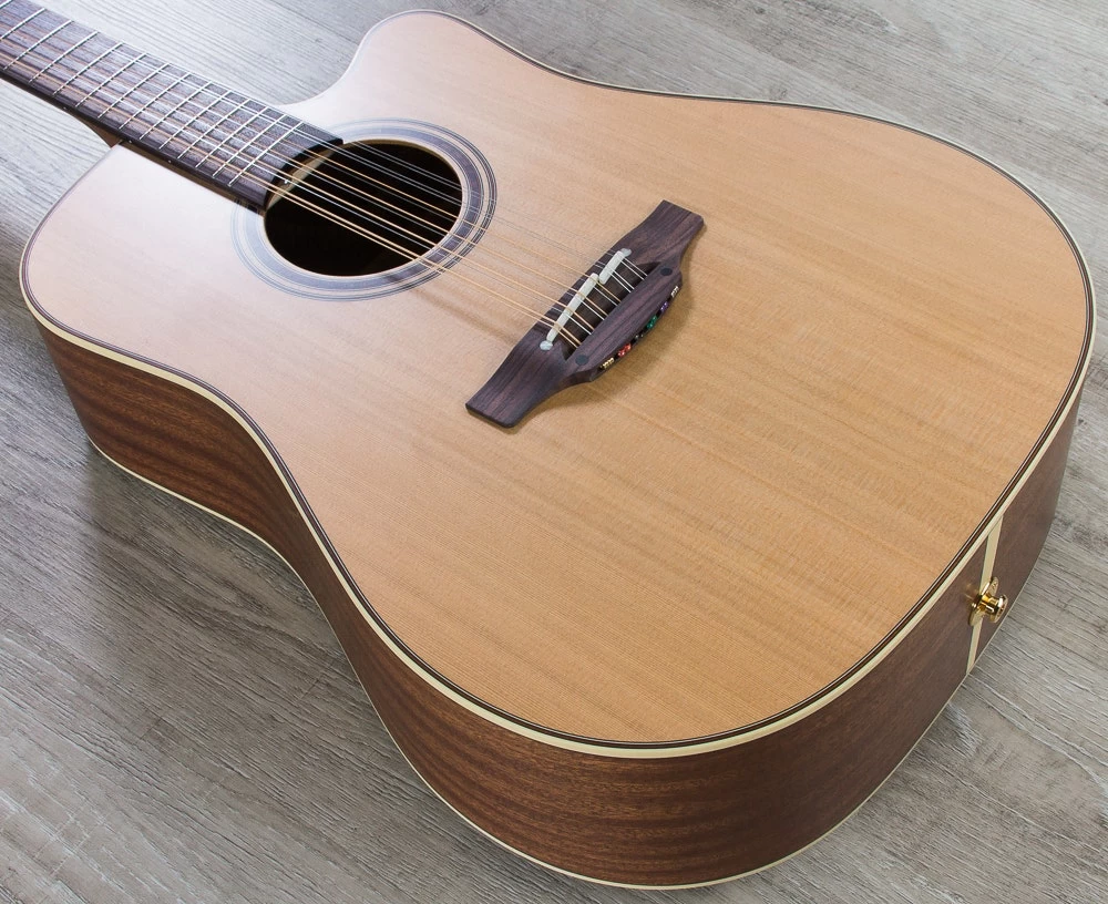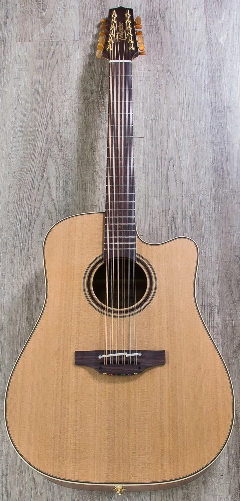 Takamine’s top-line Pro Series P3DC-12 presents rich dreadnought 12-string tone with peerless Takamine style and performance. With resonant tonewoods, elegant appointments, smooth playability and state-of-the-art electronics, it’s an exquisite acoustic experience onstage and off. The solid cedar top features hand-scalloped X bracing and ivory binding, with dark purfling and a gorgeous concentric-ring rosette with wood marquetry. The unique Takamine split-saddle bone bridge provides faultless intonation and excellent acoustic coupling to the top.