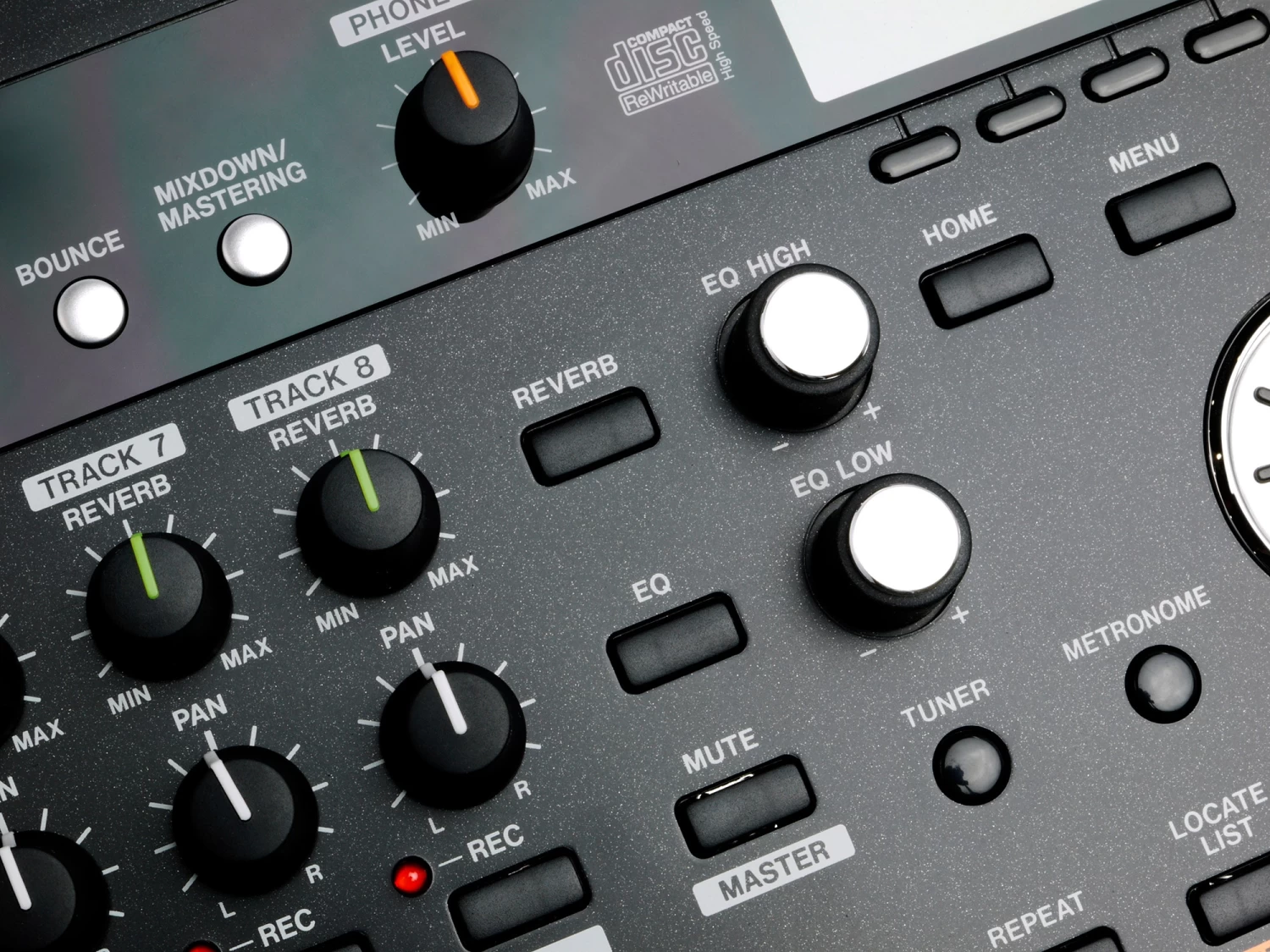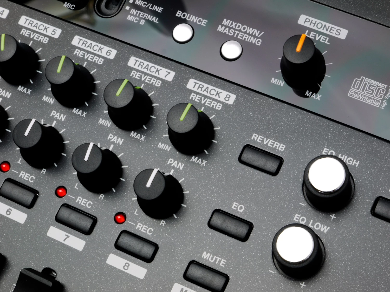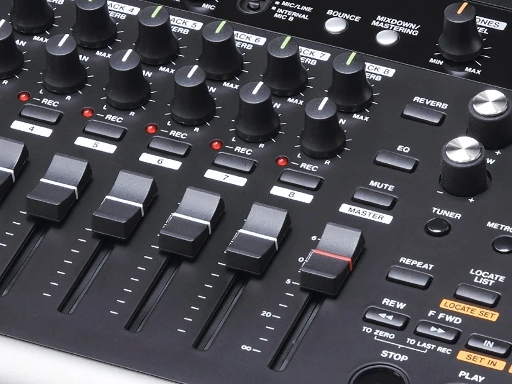 Each track has its own send to a stereo reverb processor as well as two-band shelving EQ. Once you’ve perfected your mix with the 45mm faders, pan knobs, reverb and EQ, record it to the dedicated stereo master track. Your mix can be processed with mastering effects like EQ and limiting for a tight, modern sound. When you’re satisfied, transfer your mix to a computer over USB 2.0.