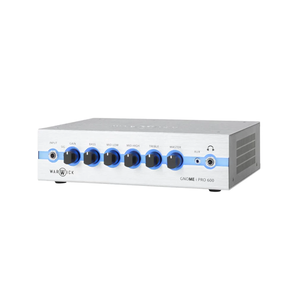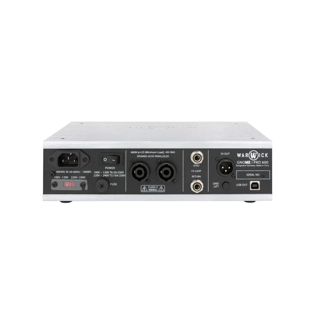 The Warwick Gnome i Pro 600 bass amplifier head offers bassists a clear, defined bass sound and impressive power – all packed in a super-compact, lightweight design that will easily fit in your pocket! The Gnome amp heads were developed to offer transparent, crisp, and noise-free performance combined with an ultra-portable, lightweight design in an affordable and reliable amp for discerning musicians and for seasoned professionals. The Warwick Gnome i Pro 600 offers an easy-to-use audio interface without any special driver or software requirements. The USB audio interface allows you to connect your Gnome amp to a PC, MAC or compatible mobile device to record your playing or to process your signal using digital audio software plug-ins. The 4-band EQ with +/- 15 dB cut/boost per band offers a lot of options to shape the sound according to your own ideas and the balanced post-EQ XLR DI output with switchable ground lift offers an easy way to use the Warwick Gnome i Pro 600 for live gigs or studio recordings. Silent practicing is also possible if you disconnect the speaker output and use only your headphones. The front-mounted 1/8″ auxiliary input can be used to connect audio/line sources.