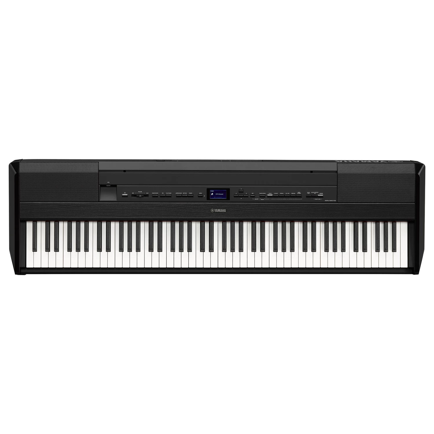 The P-525 is the flagship in the P-series. This instrument faithfully represents the quality of Yamaha’s acoustic grand craftsmanship and modern technology. The P-525 features GrandTouch-S with wooden keys, synthetic ebony and ivory key tops, and escapement, and the CFX and Bösendorfer grand piano voices. Available in black or white finishes.